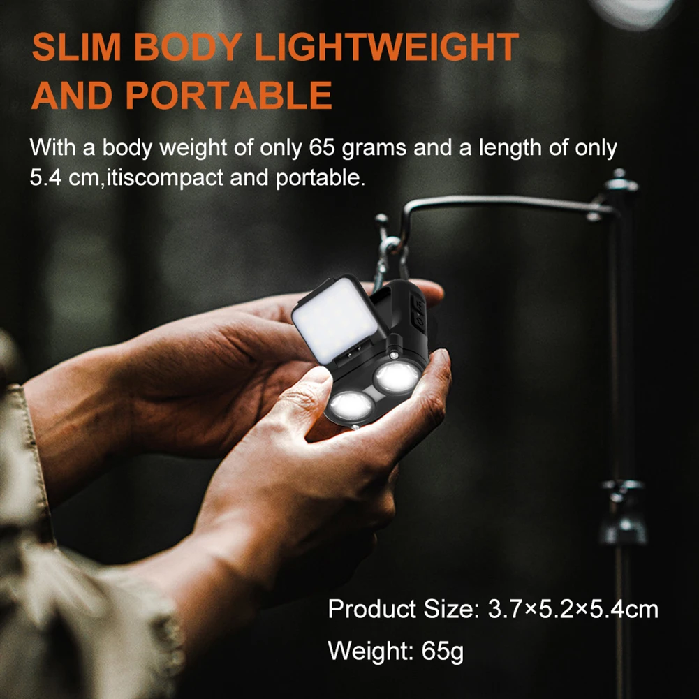 ![]() 1200mAh Mini Cap Clip Headlamp 700LM TYPE-C Rechargeable Induction LED Light Waterproof Head Flashlight 5 Modes Outdoor Lighting Feature: 1. Compact and Lightweight: Weighing only 65g, this headlamp is incredibly lightweight and portable, making it easy to carry during outdoor activities. 2. Versatile Lighting Modes: With 5 different lighting modes, you can easily switch between various settings to suit your needs. This headlight offers flexibility in any situation. 3. Intelligent Gesture Sensing: The LED head torch features smart gesture sensing technology, allowing you to turn it on or off simply by waving your hand within a 15cm range. This convenient feature provides hands-free operation and enhances user experience. 4. Long-lasting Battery Life: Equipped with a high-capacity 1200mAh lithium battery, this headlamp offers an extended runtime, ensuring you won't be left in the dark when you need it most. The Type-C interface enables quick charging in just 2 minutes, providing even more convenience. 5. Adjustable Lighting Angle: The headlamp's lighting angle can be freely adjusted to meet your specific requirements. The back clip bracket allows for a 0-180° adjustable range, ensuring optimal illumination in any direction. Specification: Material: ABS Color: black, army green, khaki (optional) Lamp body size: 5.4cm/2.13in * 5.2cm/2.05in * 3.7cm/1.46in Storage box size: 11.5cm/4.53in * 7.2cm/2.83in Net weight: 65g Lamp beads: main light LED, side light COB Brightness: main light 500LM, side light 200LM, main light+side light 700LM Mode: The main light is highlighted, the side light is highlighted, the main light and side lights are all on, the red light is always on, and the red light is flashing Gesture sensing distance: up to 15cm Battery: 1200mAH lithium battery Charging time: 3 hours Battery life: 3.5-5 hours Charging interface: TYPE-C Note: ![]() 1 x Headlight 1 x Charging Cable 1 x Quick Hook 1 x Headband 1 x Headband Fixing Clip 1 x Storage Bag ![]() ![]() ![]() ![]() ![]() ![]() ![]() ![]() ![]() ![]() ![]() ![]() ![]() ![]() ![]() ![]() ![]() ![]() ![]() ![]() ![]() ![]() ![]() ![]() ![]() ![]() ![]() ![]() ![]() ![]() ![]() ![]() ![]() ![]() |
