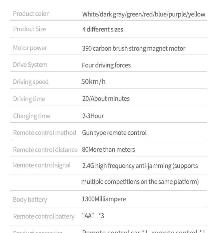 1. The simulation structure design is adopted, which has the control feeling of a real car, and realizes full-scale continuously variable speed change, high-speed driving, rapid acceleration, deceleration, braking, reversing, left turn, right turn;