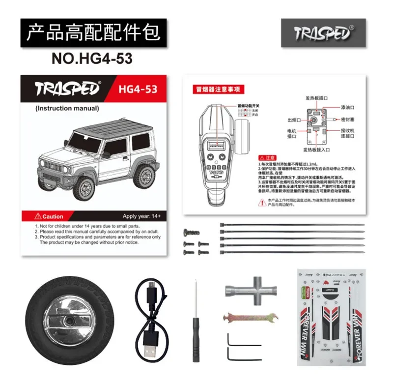 b. High configuration (including lights, sounds, smokers, 1 7.4V 600mAh 5C lithium battery, and a remote control without batteries)