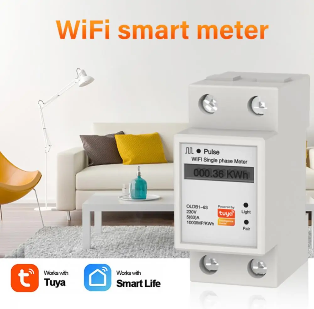 1~5PCS 286V Wifi Smart Energy Meter 63A Single Phase Din Rail Tuya Smart Home Timer Power Consumption Monitor KWh Meter