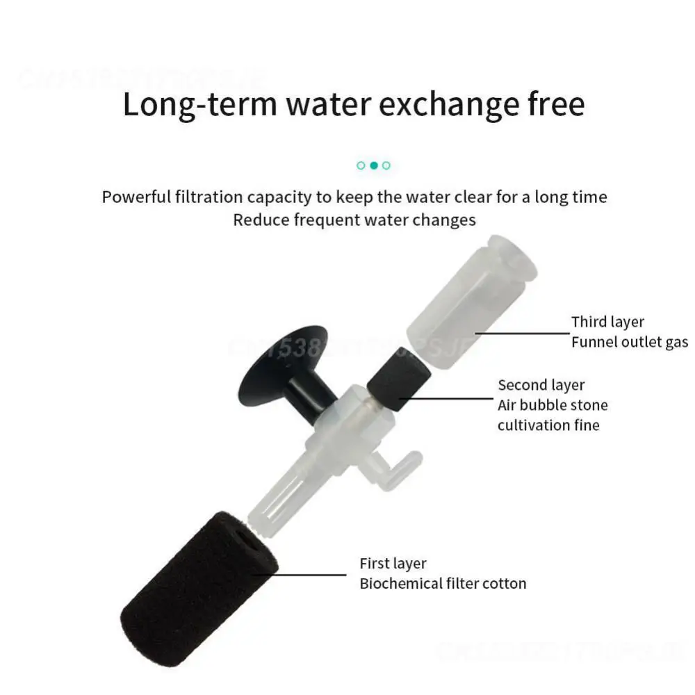 【Multi-layer Design】Filter for times, the bottom of the filter is a layer of biochemical sponge, the medium is gas stone, and then the outlet of the funnel is covered, the filtering effect is better.