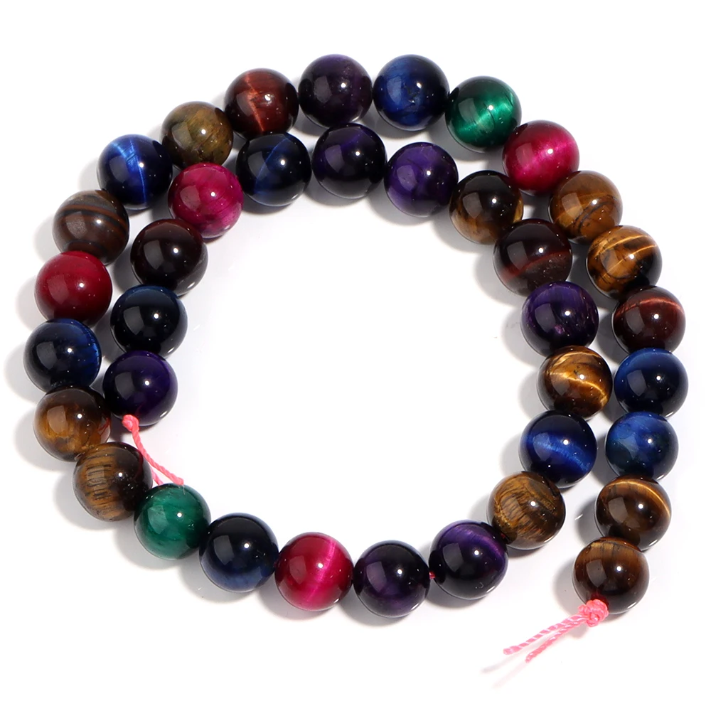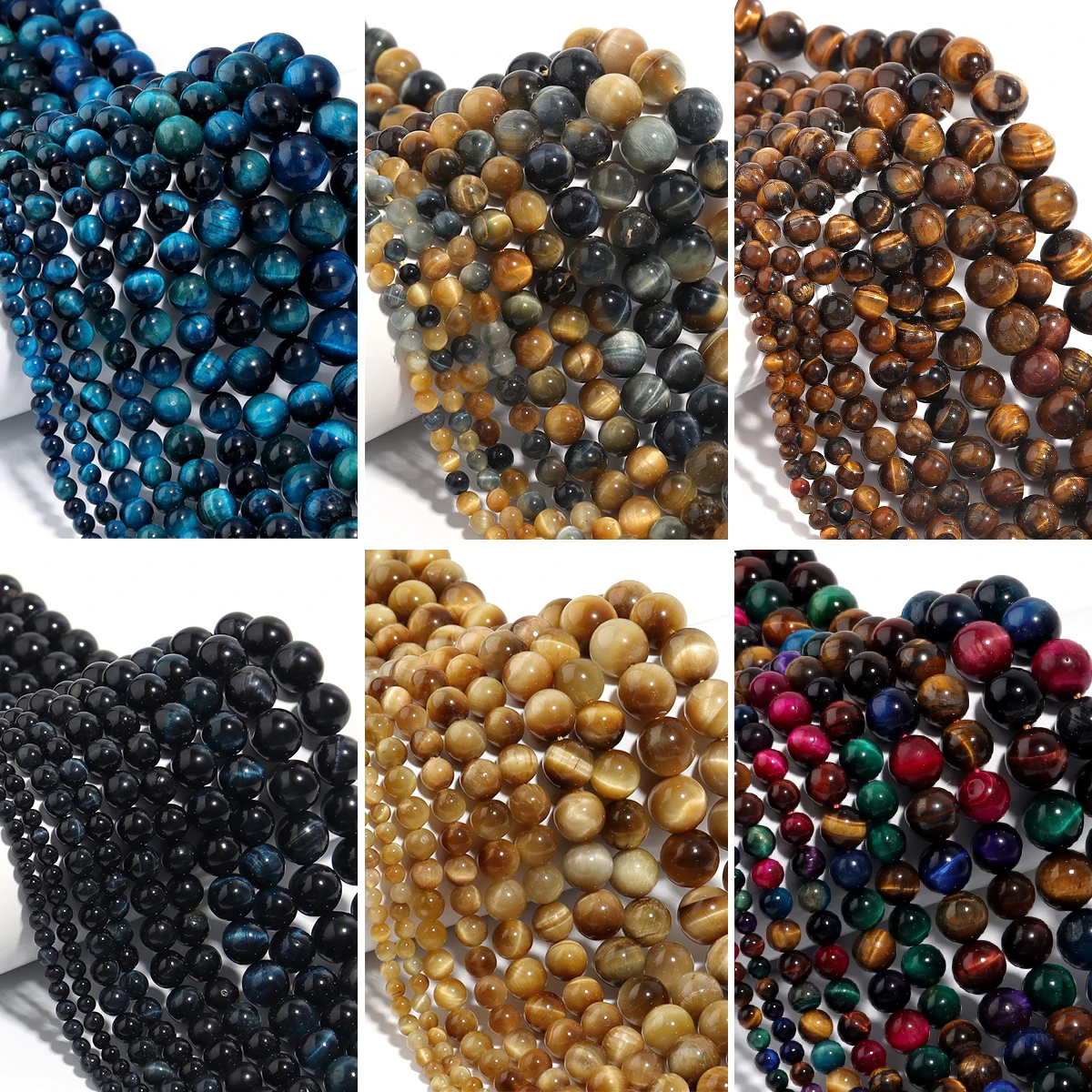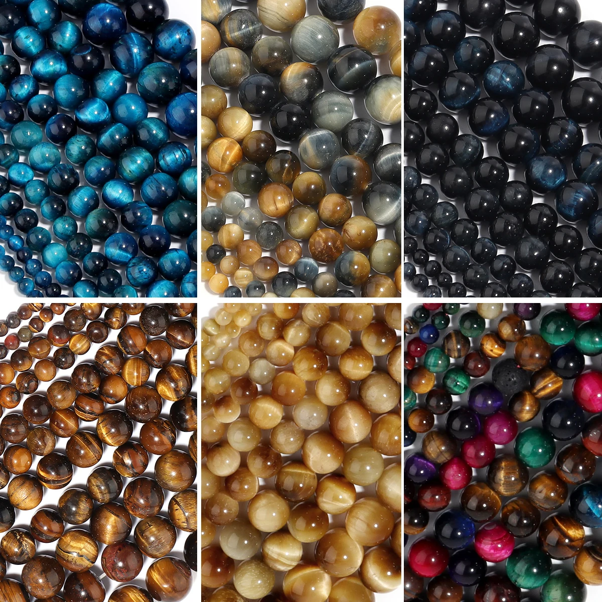 1 Strand Natural Tiger Eye Stone Beads Multicolor Round Loose Spacer Beads 4-12mm for Jewelry Making DIY Bracelet Accessories