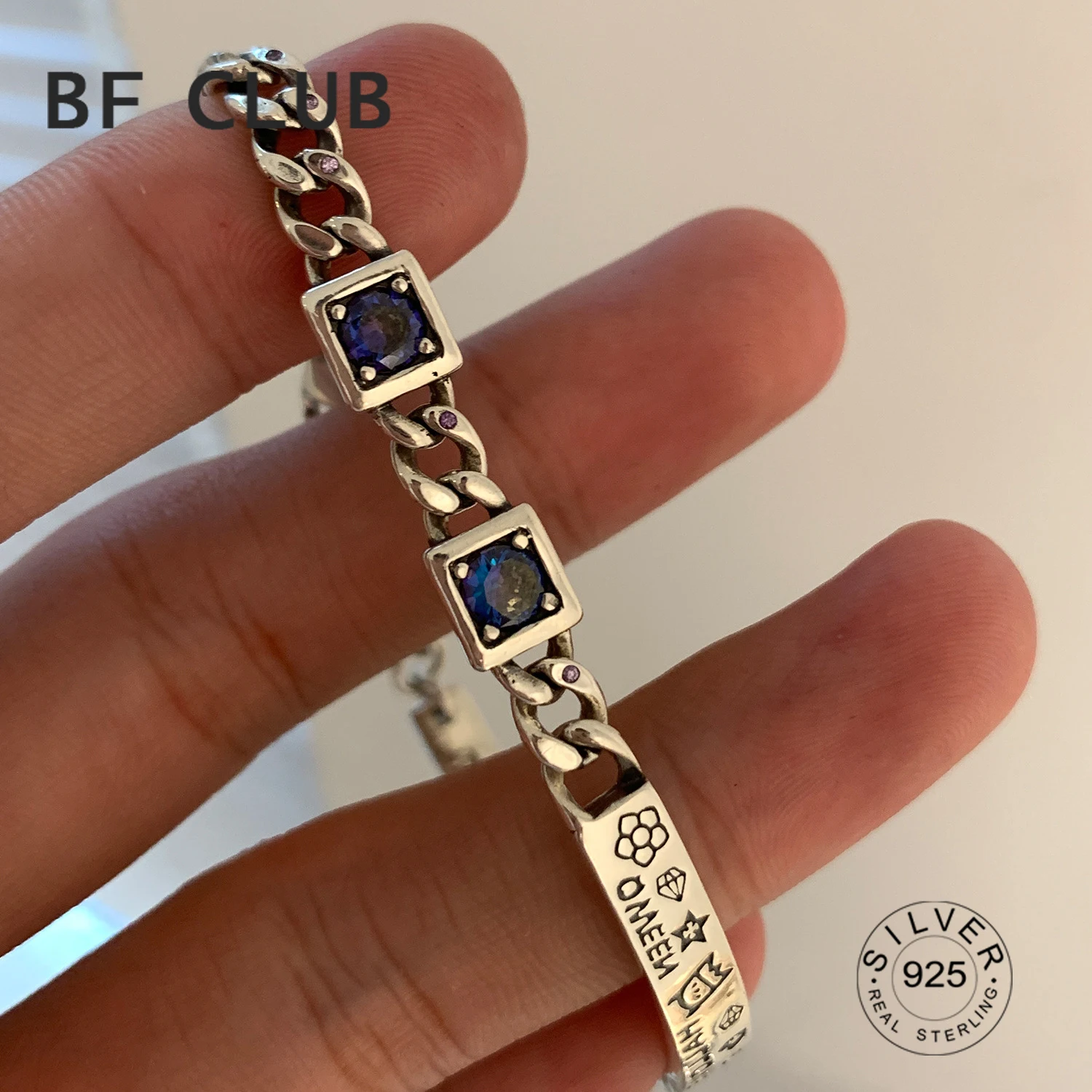 Choose Options Quick view 100% Solid 925 Sterling Silver Hiphop Thick Sparling Bracelet for Women Men Vintage Handmade Hasp Bracelet Birthday Gift S-B451 $12.48
