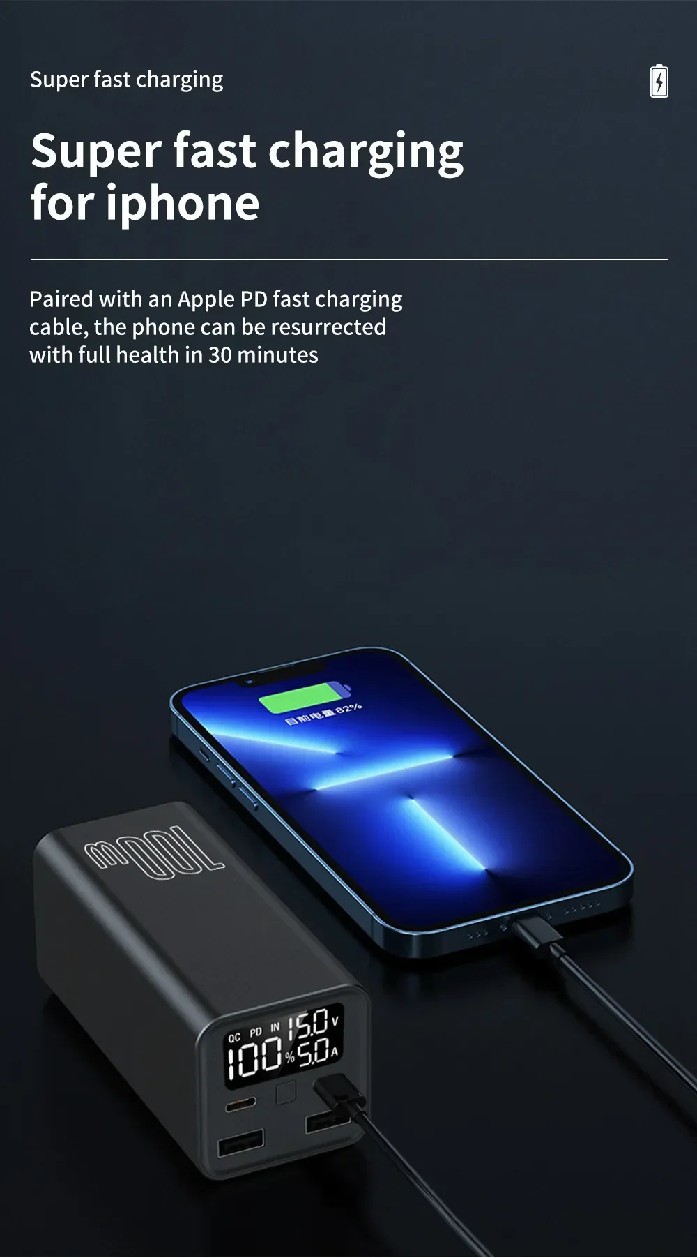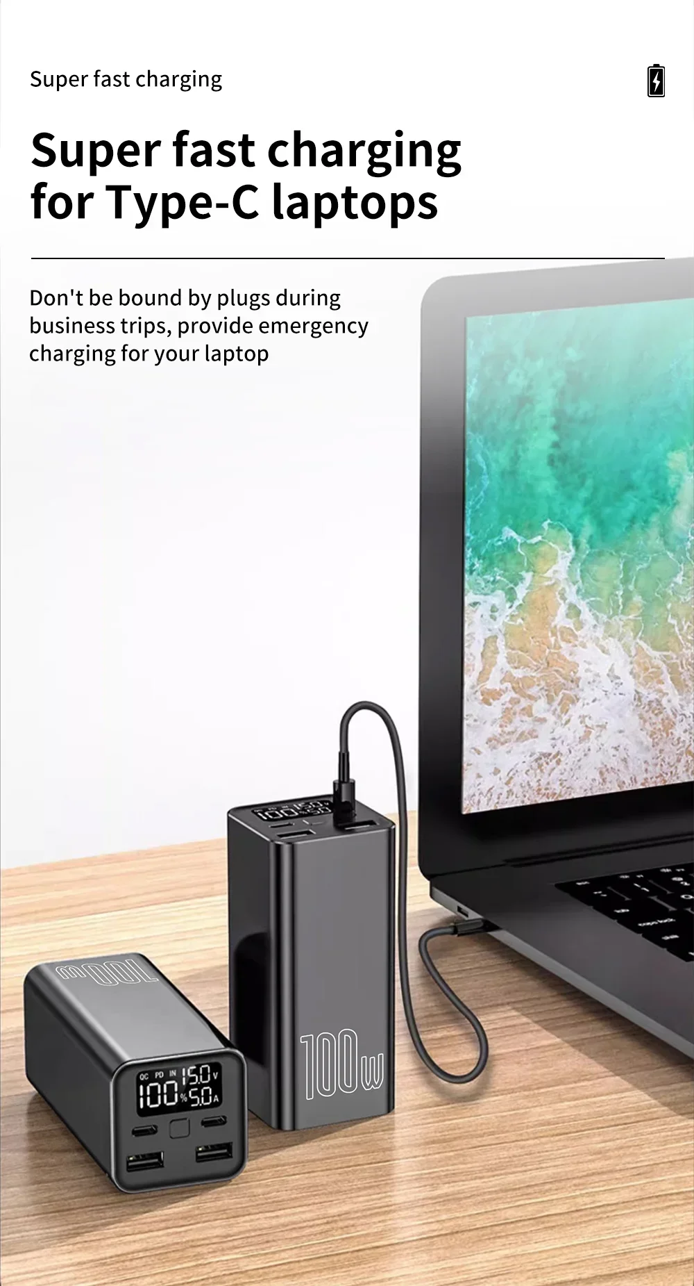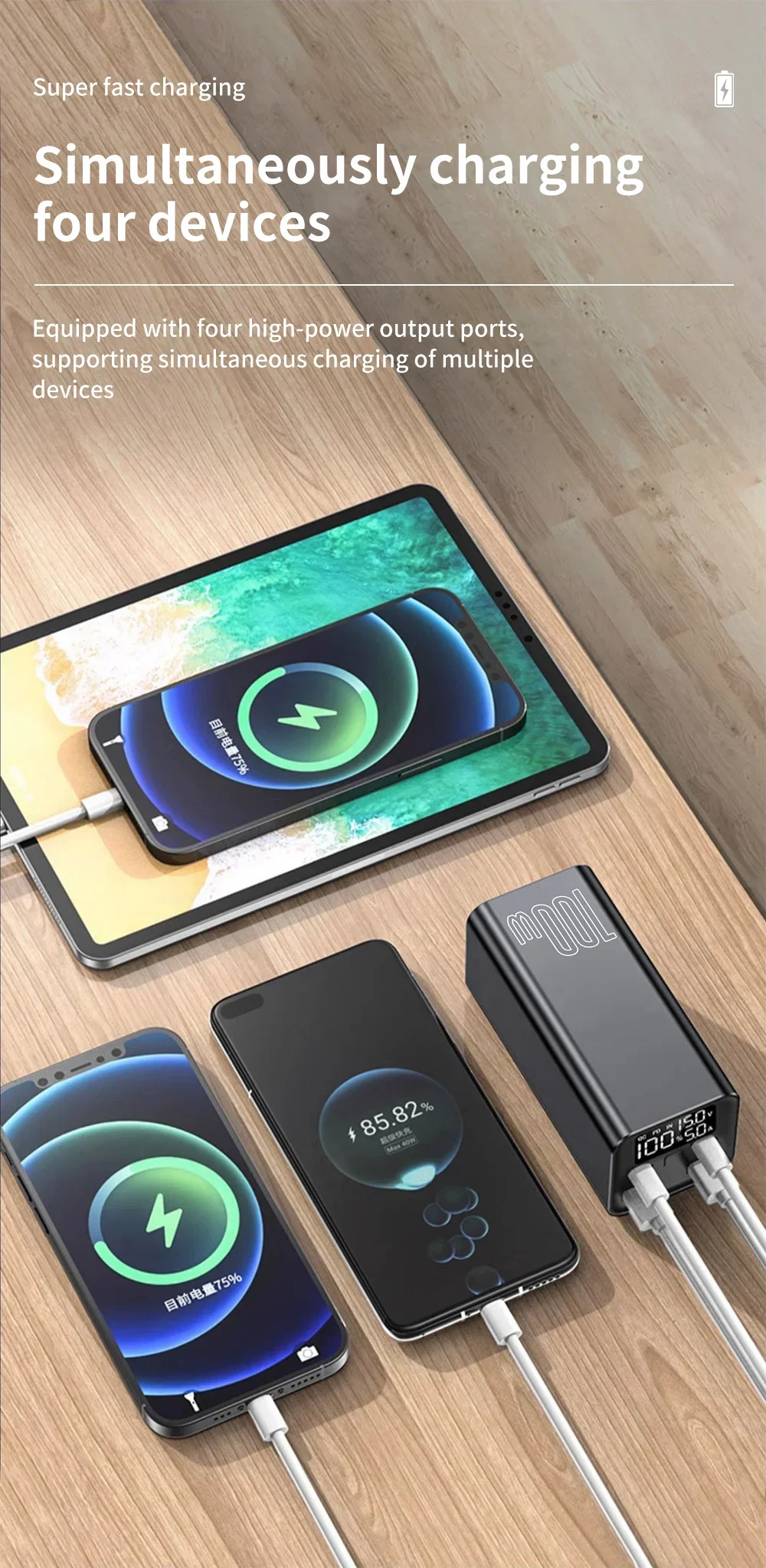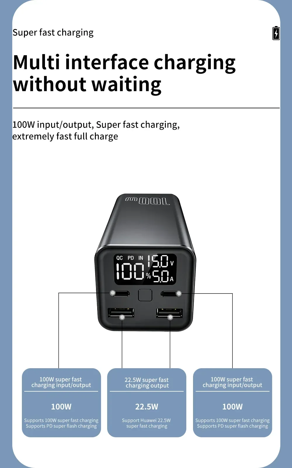 100000mAh Power Bank Type C PD 65W Fast Charging Powerbank External Battery Charger For Smartphone Laptop Tablet iPhone Xiaomi