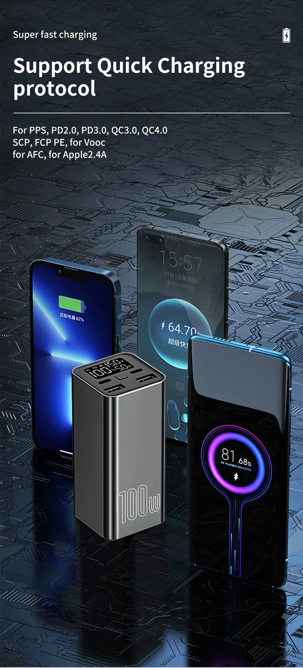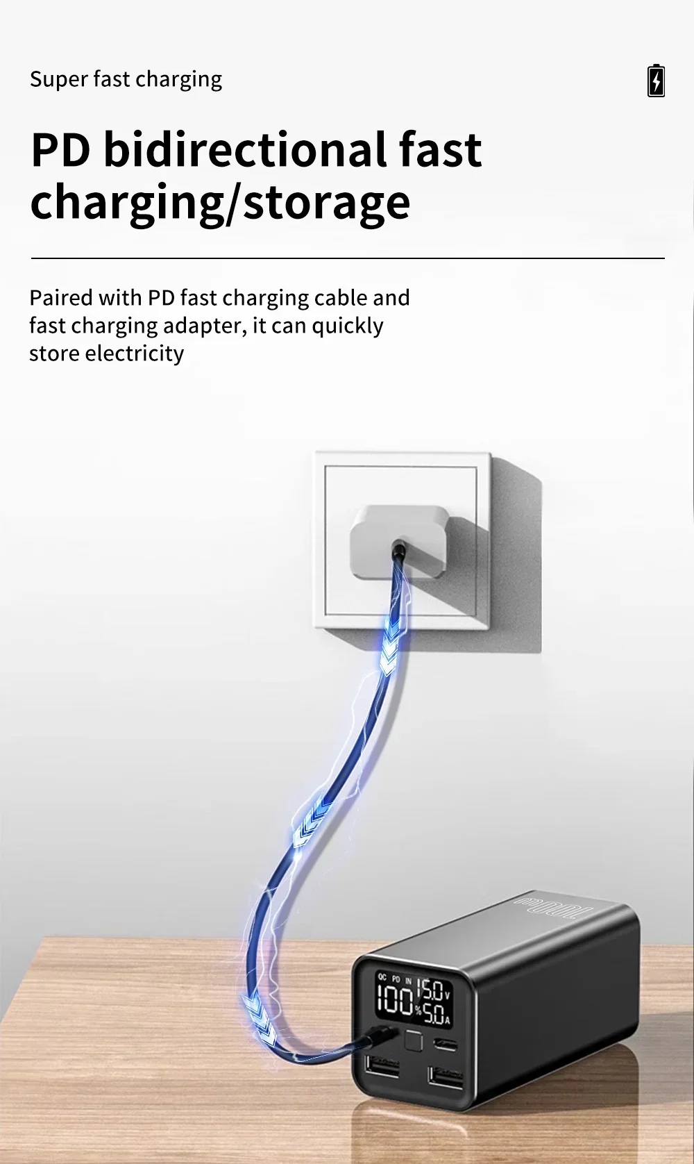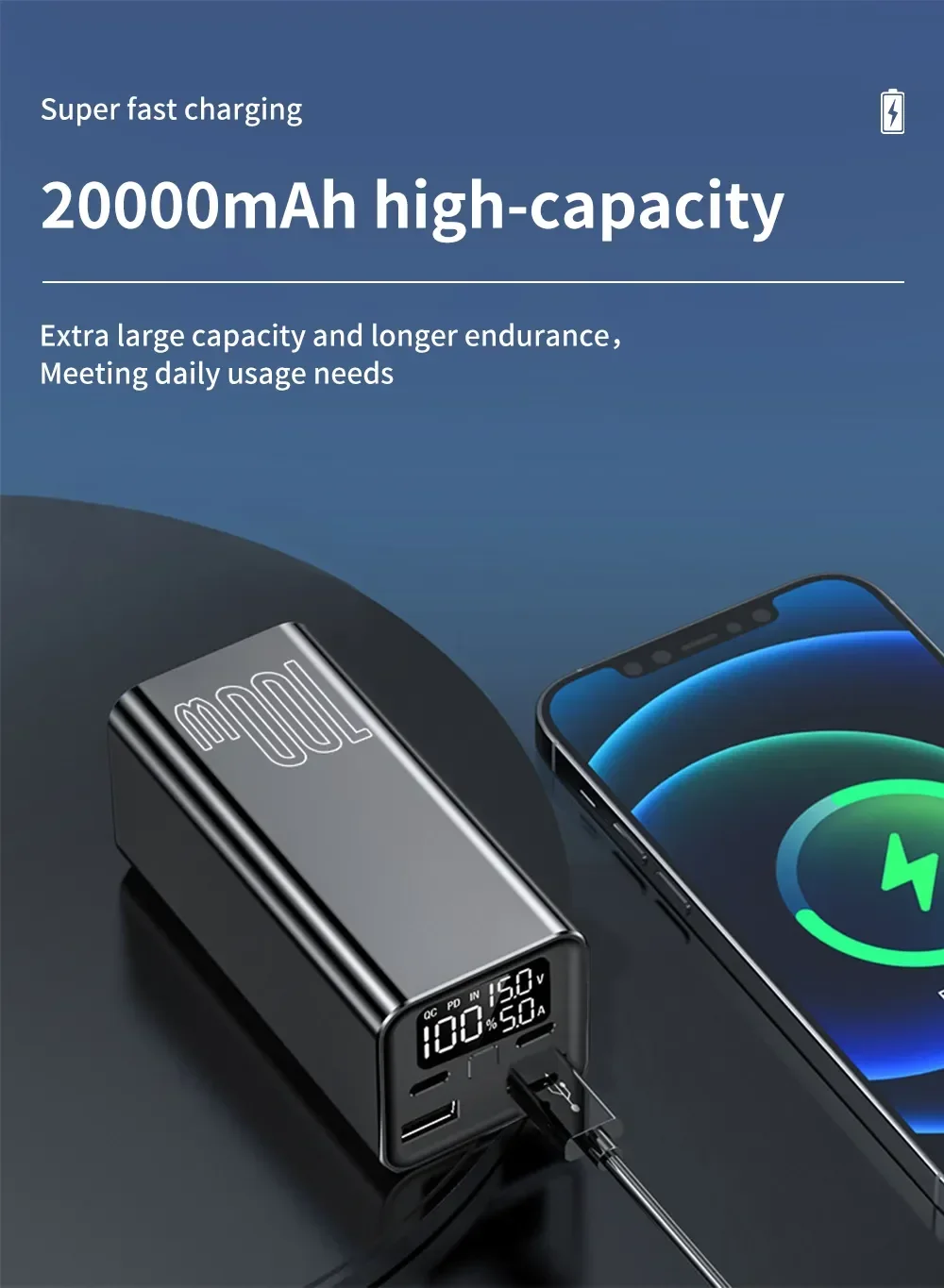 100000mAh Power Bank Type C PD 65W Fast Charging Powerbank External Battery Charger For Smartphone Laptop Tablet iPhone Xiaomi