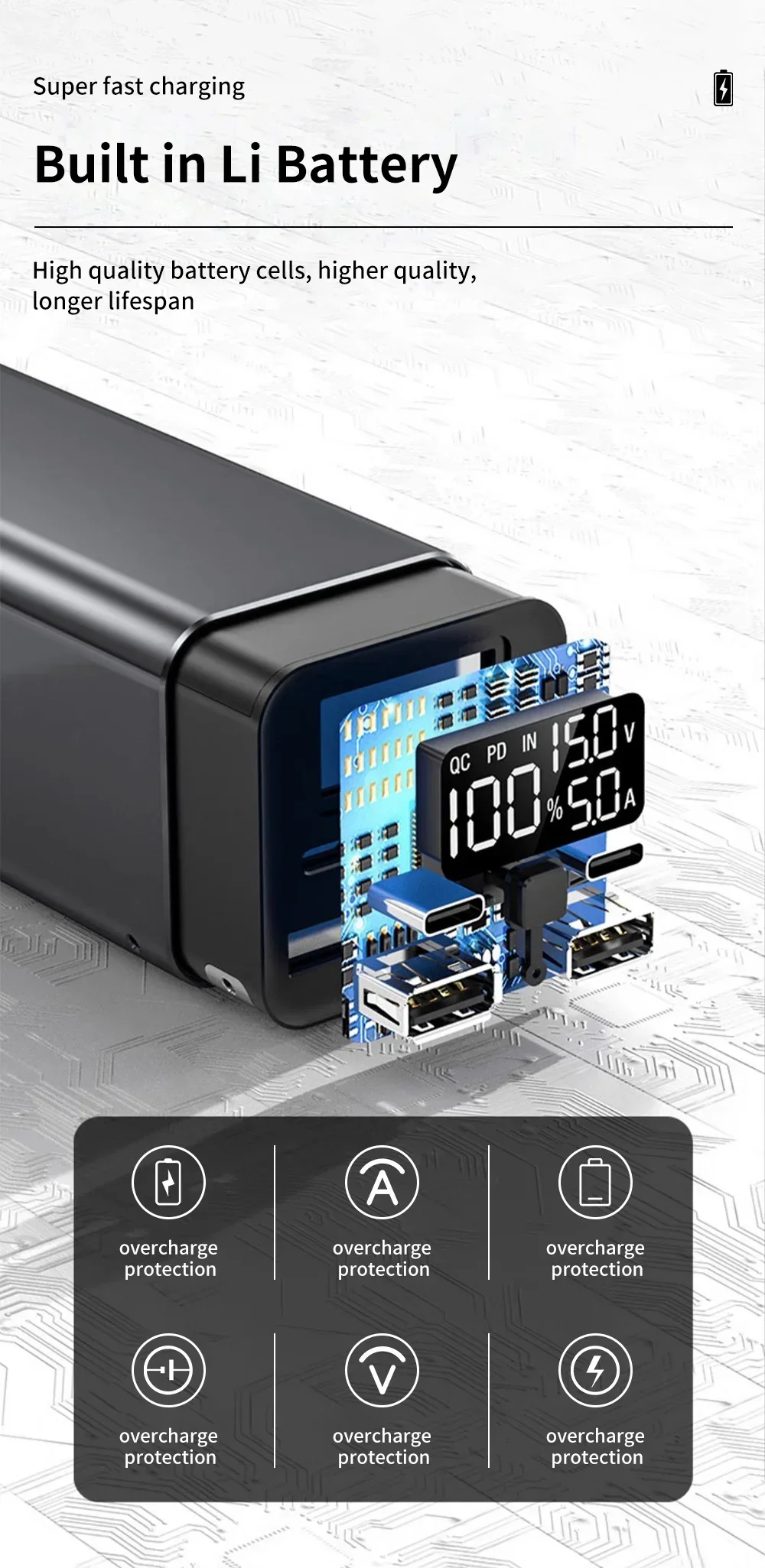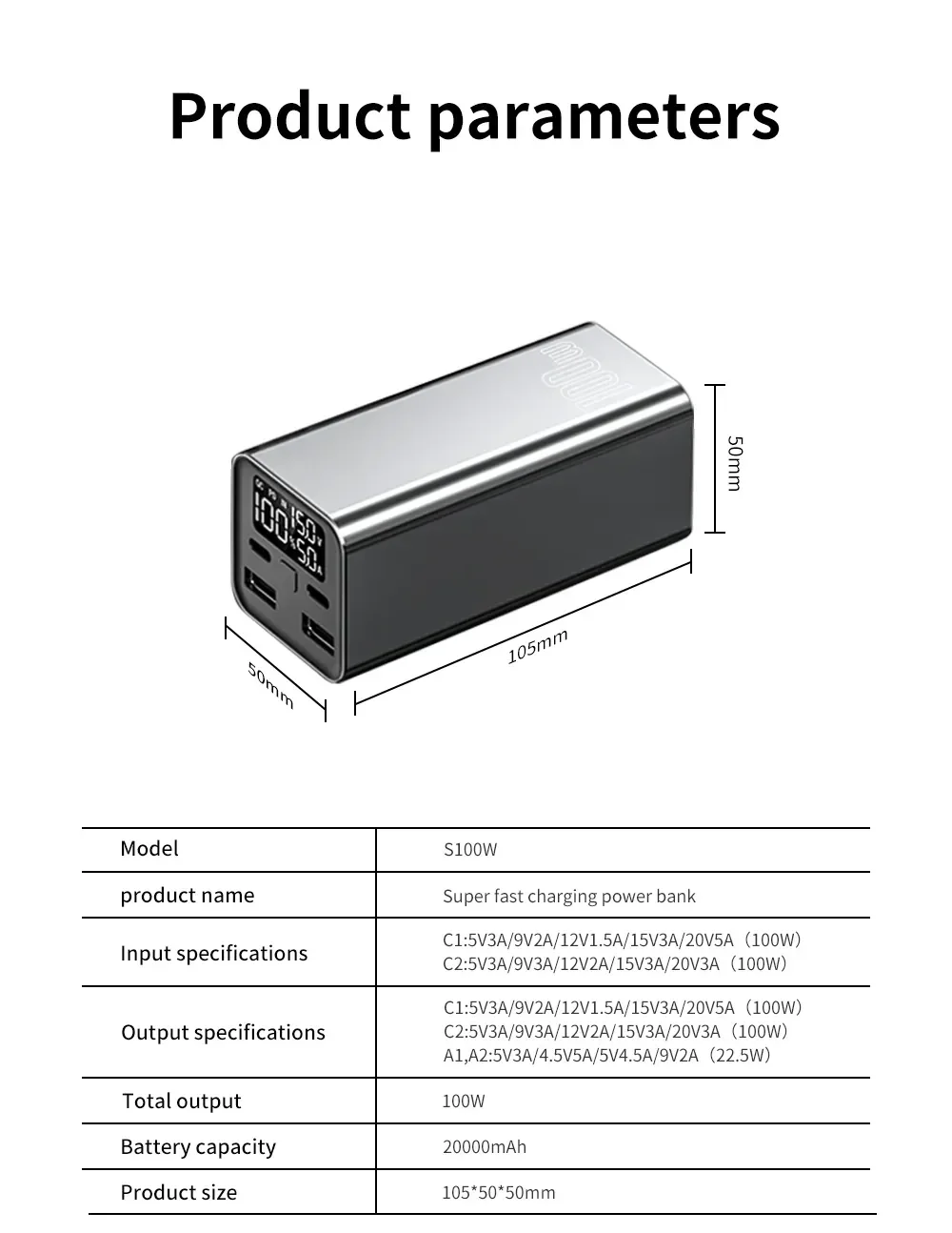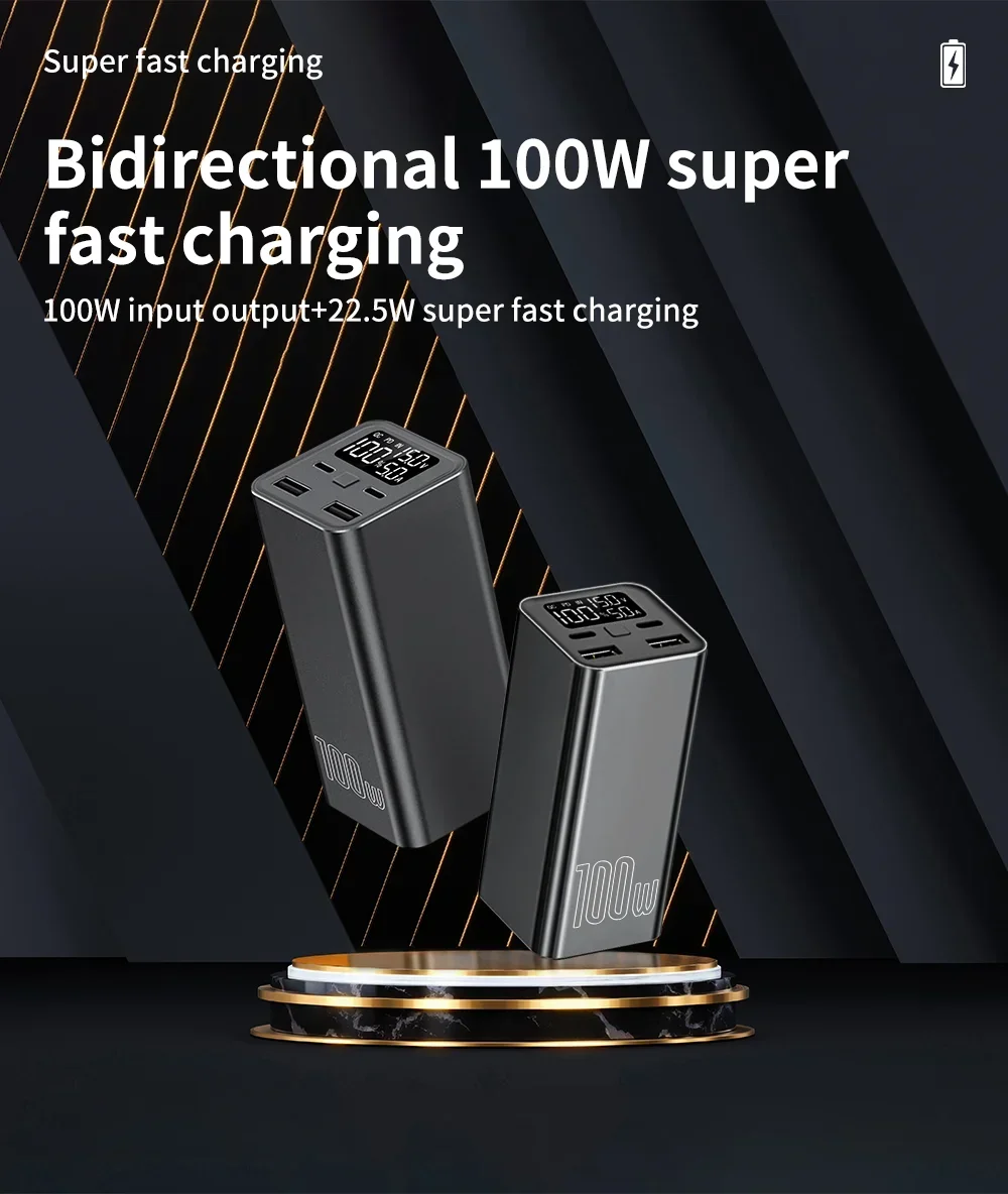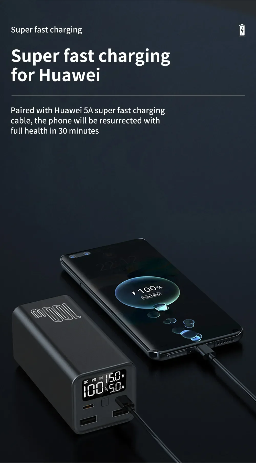 100000mAh Power Bank Type C PD 65W Fast Charging Powerbank External Battery Charger For Smartphone Laptop Tablet iPhone Xiaomi