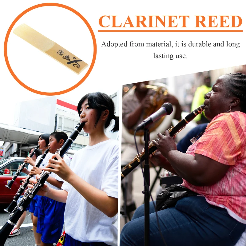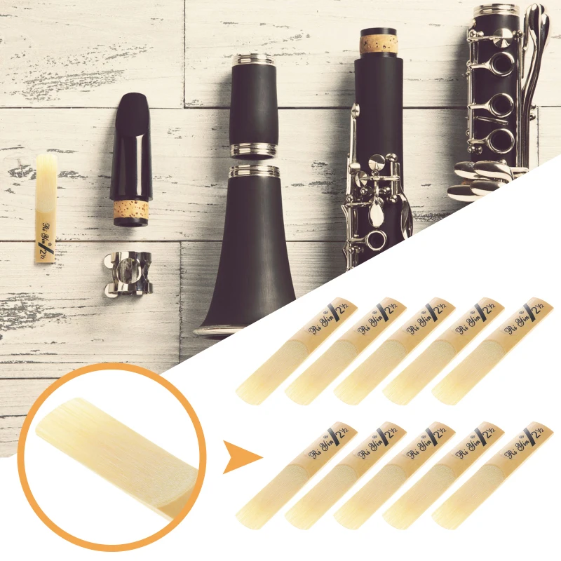 Clarinet Reeds for Beginners Adopted from material, it is durable and long lasting use.|Clarinet Reeds for Beginners 10pcs in one pack, 2. 5 in Strength.|Clarinet Reeds for Beginners Suit for Traditional bB Clarinet.|Clarinet Reed Strength 2. 5 A for clarinet players.|Clarinet Reed Strength 2. 5 Providing excellent sound quality for your clarinet.