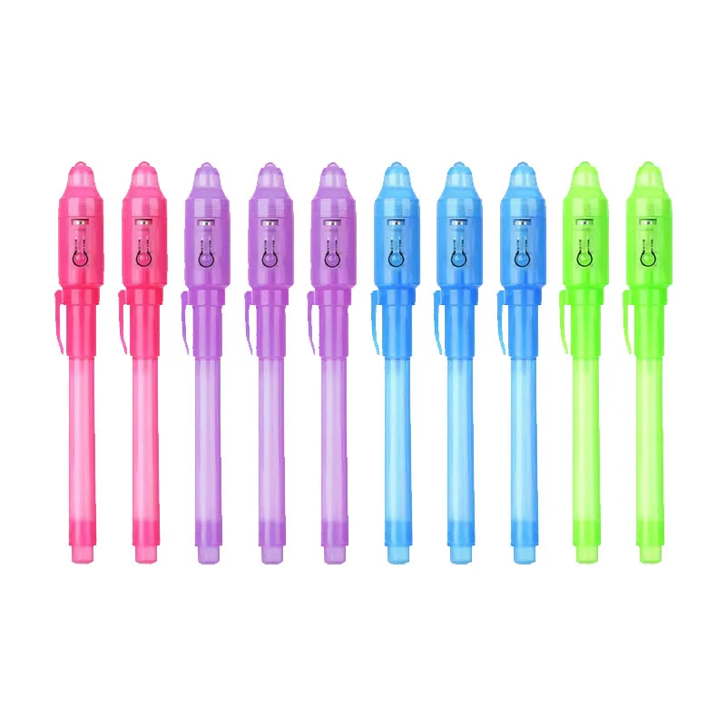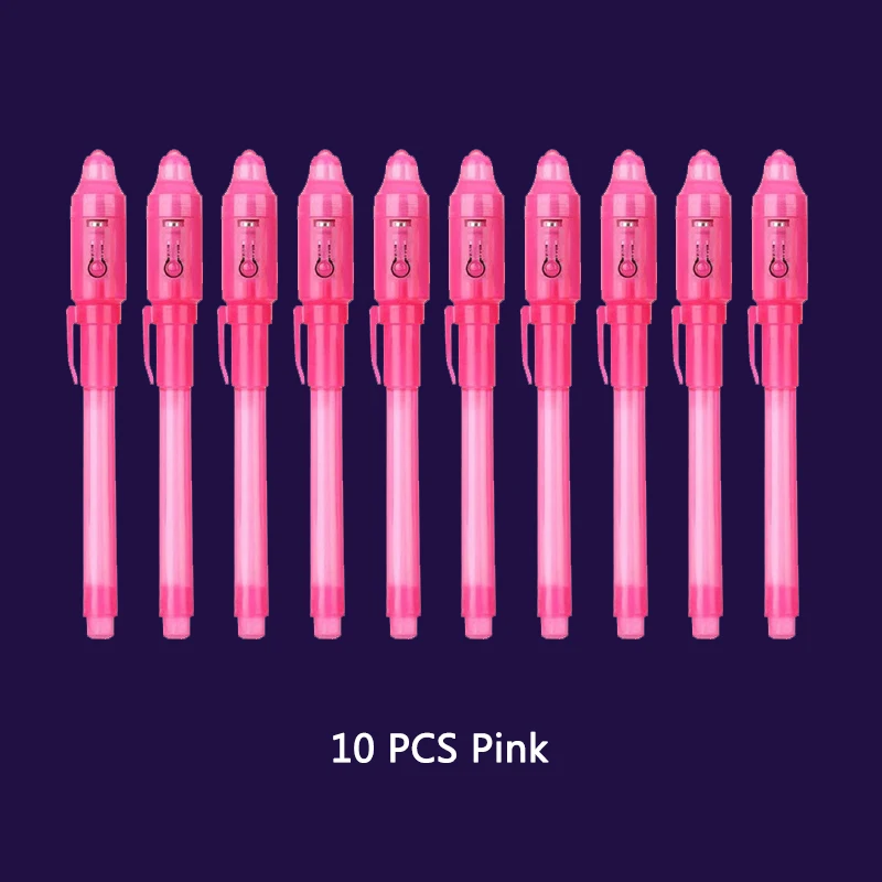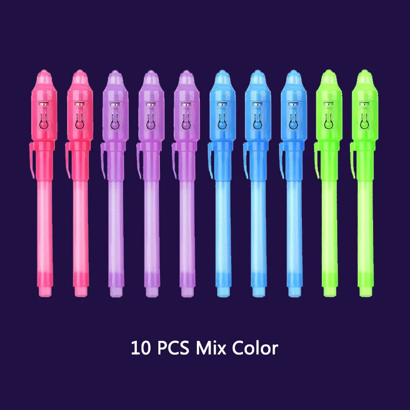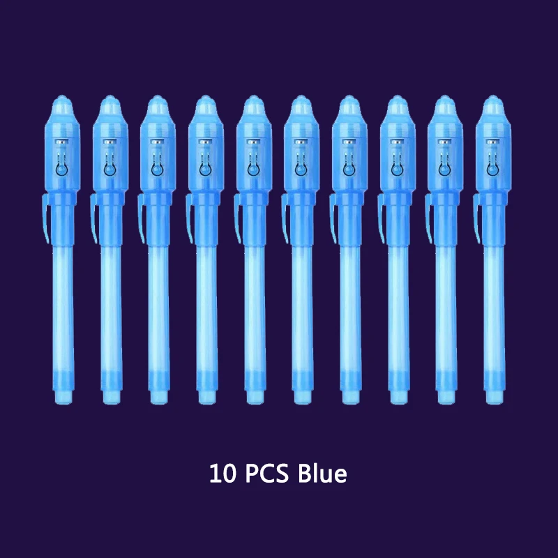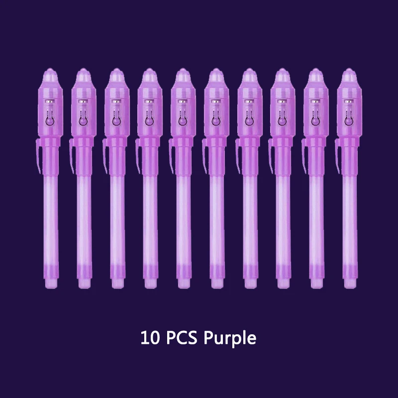 10pcs Luminous Light Pen Magic Purple 2 In 1 UV Black Light Combo Drawing Invisible Ink Pen Learning Education Toys For Child
