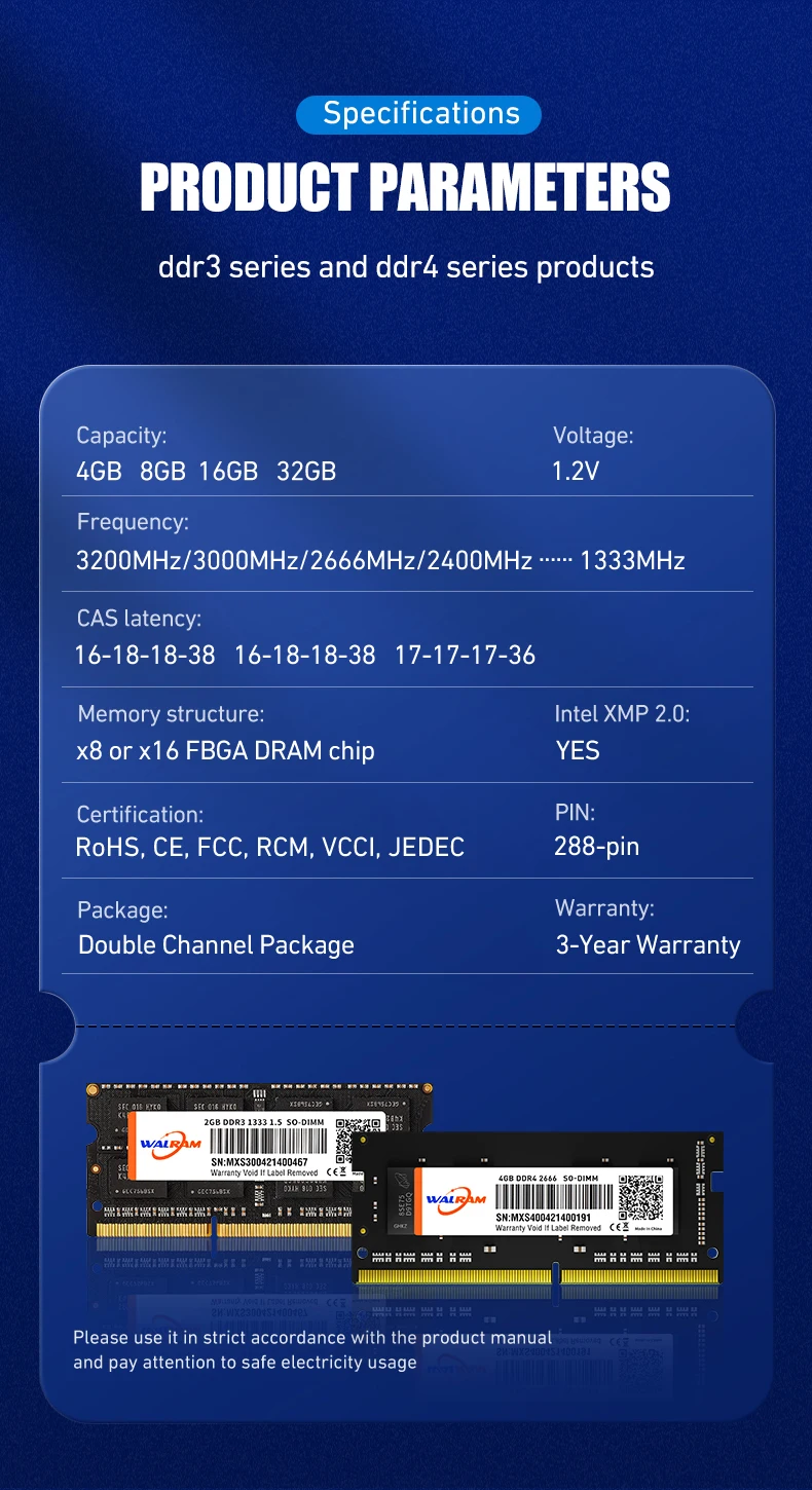 WALRAM memory through the various types of manual testing, make the product can used in different application environments,be able to provide users with both high-performance and high stability of the computer experience.