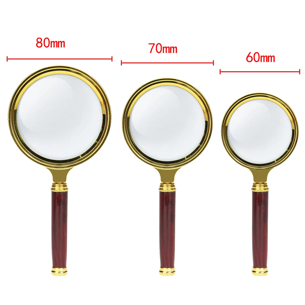 Specifications: Item: Magnifying Glass Material: copper plating + plastic + glass Magnifying Power: 10X Diameter: Approx. 80mm/70mm/60mm ![]() 1 X Magnifying Glass ![]()