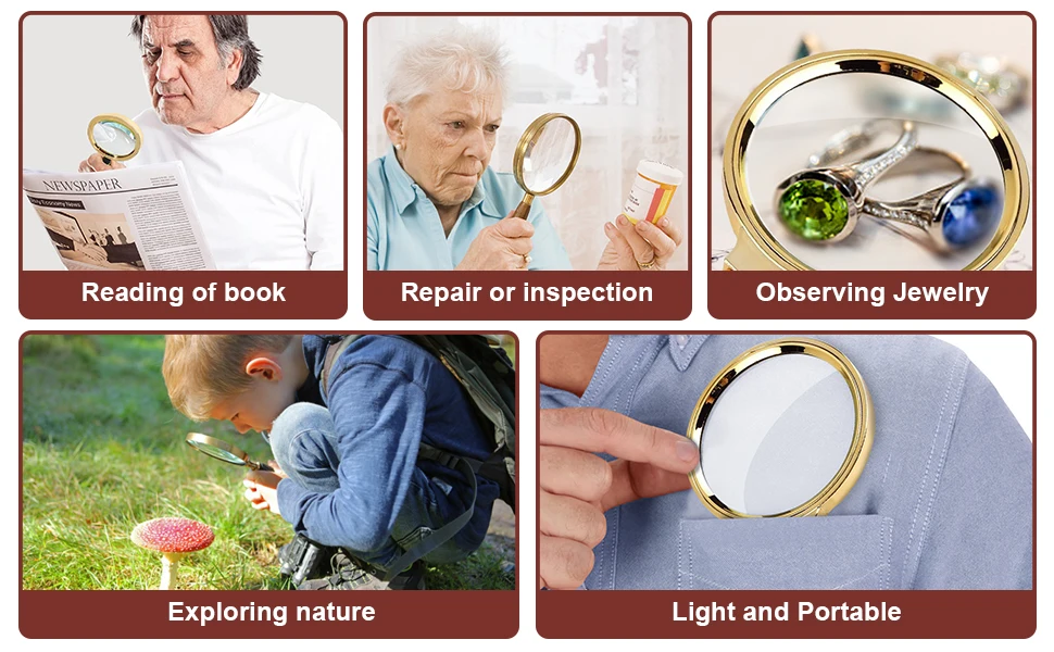 3.STYLISH, ERGONOMIC AND LIGHTWEIGHT- you can simply slide in your pocket and use. Our magnifying glass is designed for jewelers, repair technicians, outdoor buffs, and just about anyone else who is looking to read or observe tiny detail text or parts. You easily read tiny text at home, or study maps while out there.