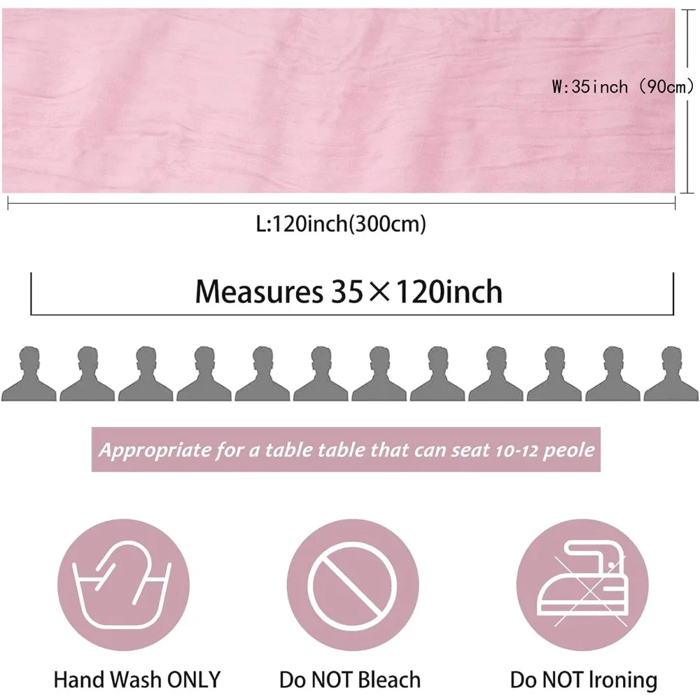 - 【Appropriate Size】The 35x120 Inch cheesecloth table runners are appropriate to use anywhere. Whether it's on a table or or cabinet, sofa. These 10Ft pink table runners are a great decoration, very romantic and delicate.