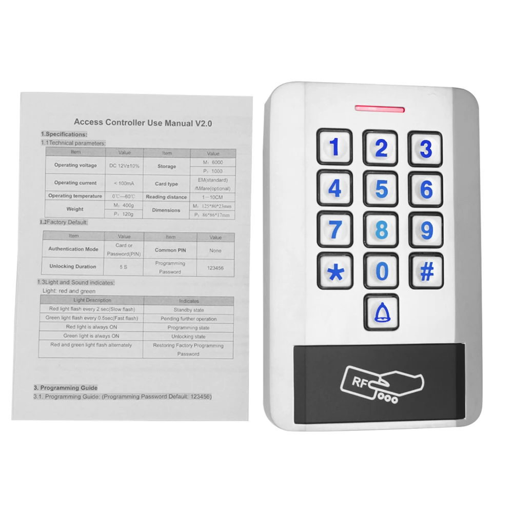 125KHZ RFID Password Keypad Access Control Backlight Waterproof IP68 Metal Door Standalone Access Control 6000 user WG 26 input