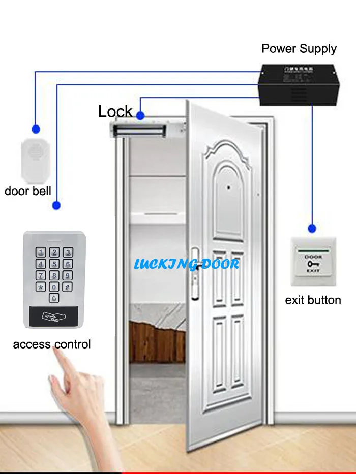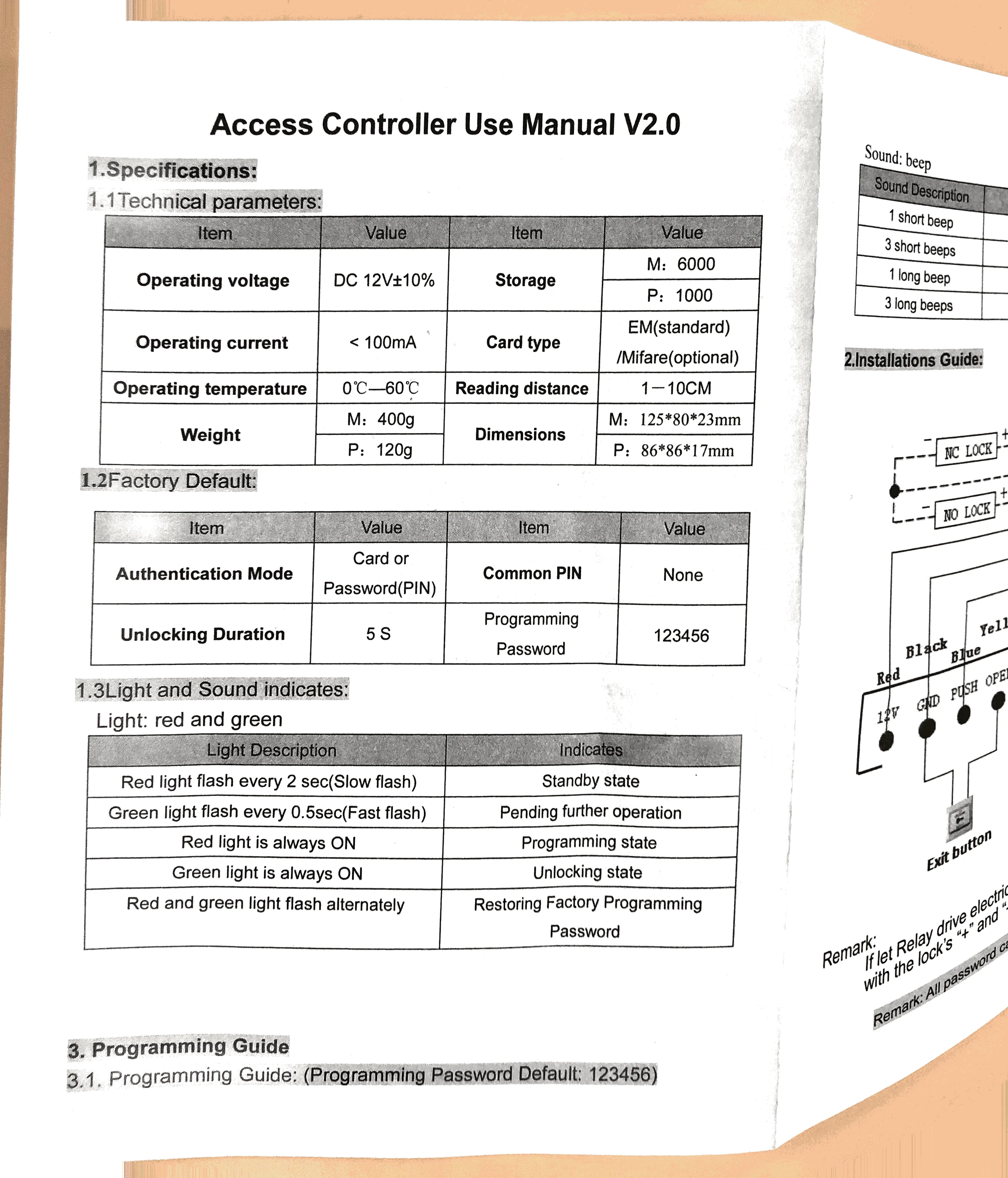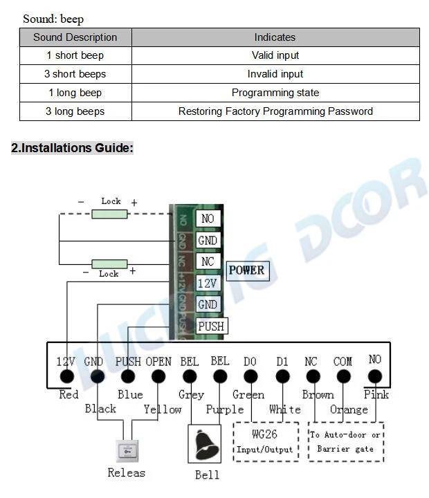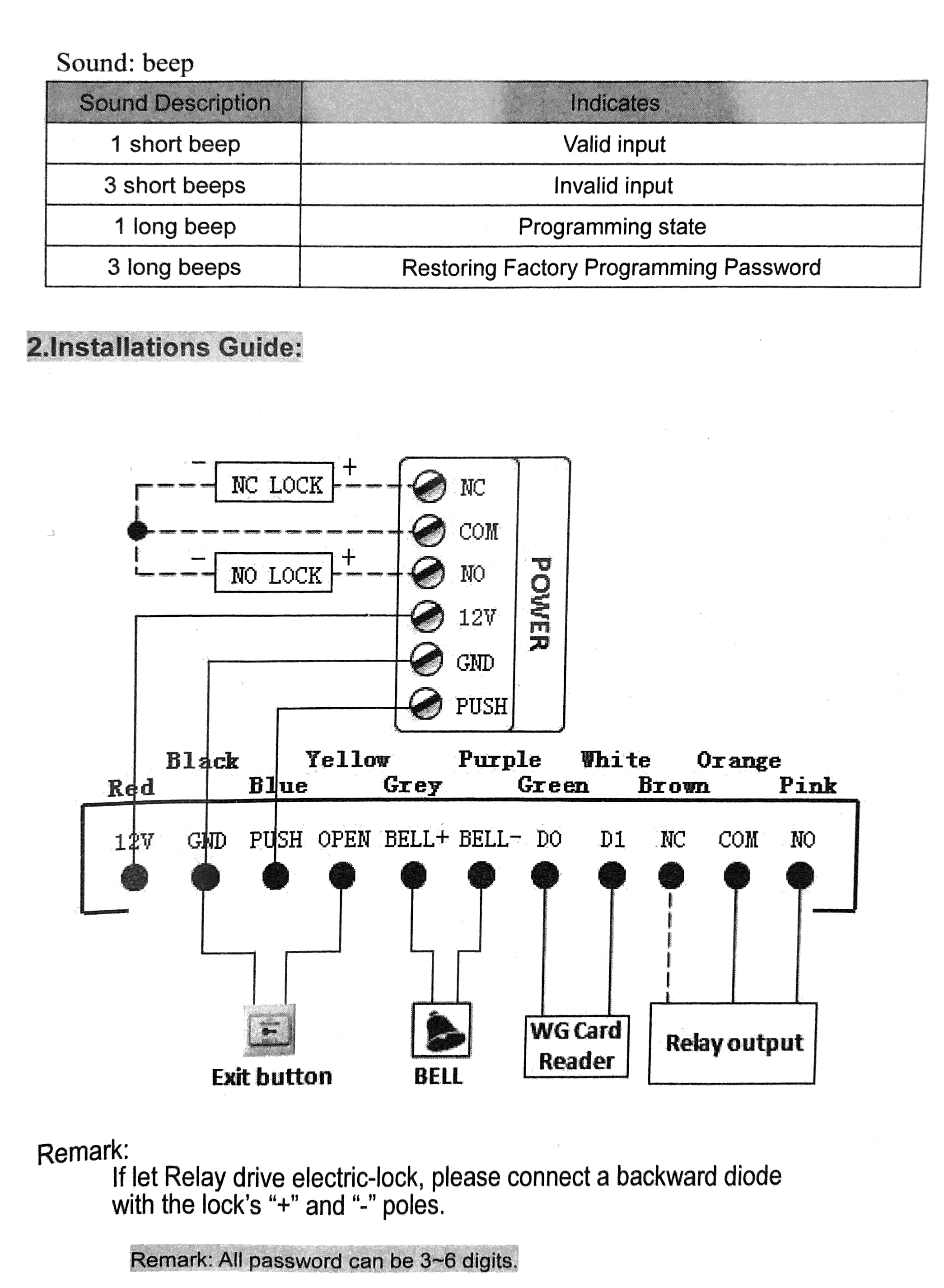 12.Wiring Connections: Electric Lock,Exit Button,External Alarm,External Reader