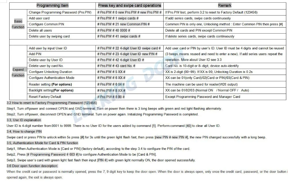4. 2000 users,Supports Card, PIN, Card + PIN