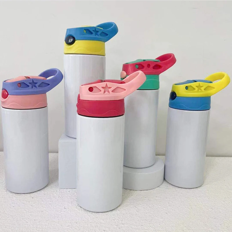 12oz Sublimation Straight Sippy Cup Flip Top Kids Bottle Stainless Steel Double Wall Water Tumbler With Straw Sippy Bottle