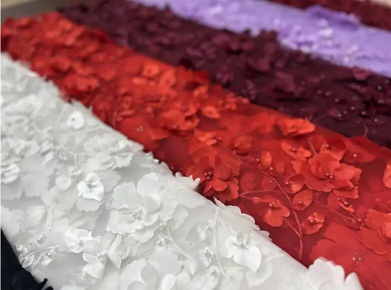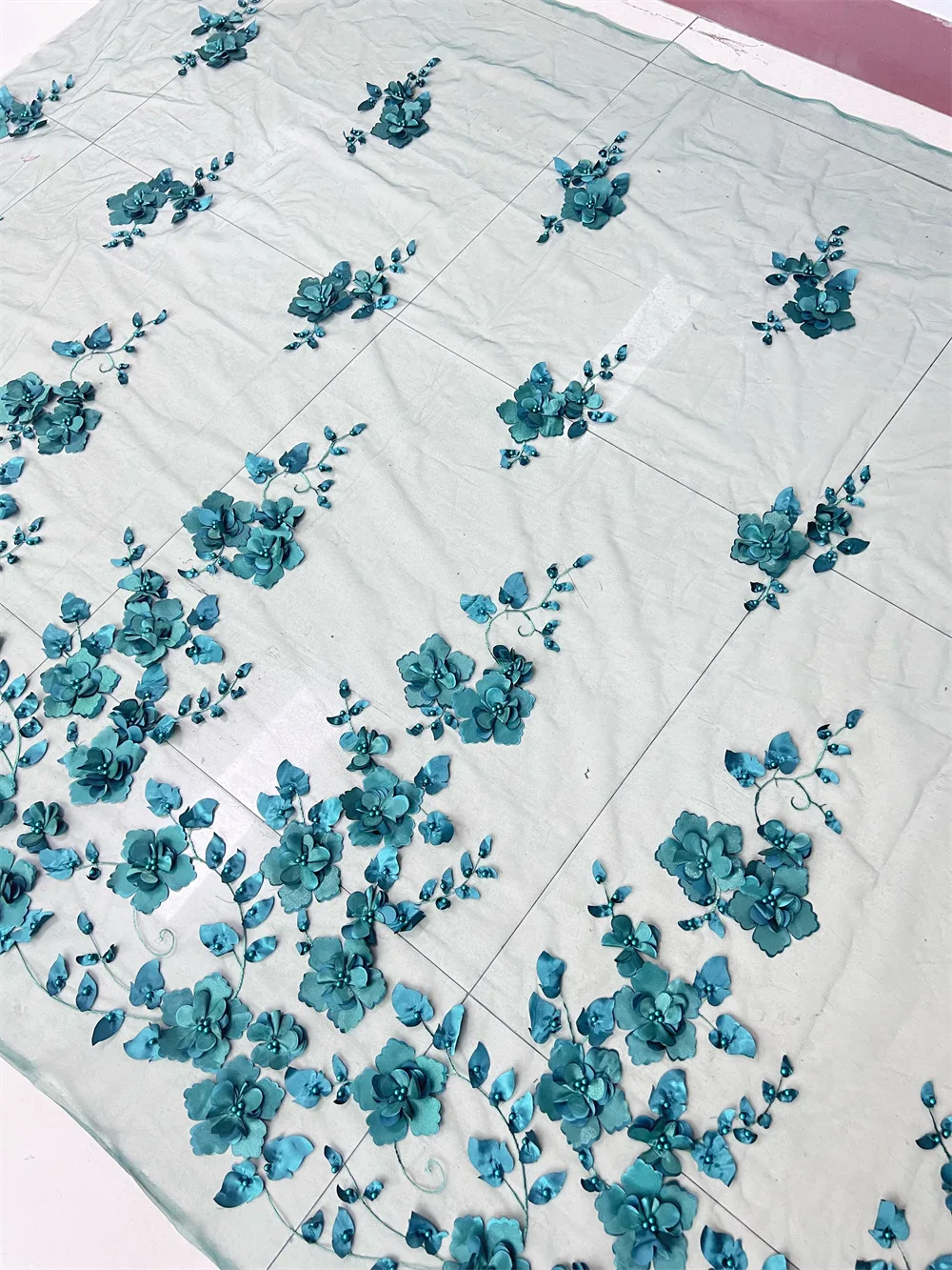 Description Description Product name:Beading 3D lace fabric Width: Total width: 150CM (embroidery part 135CM) View AllClose
