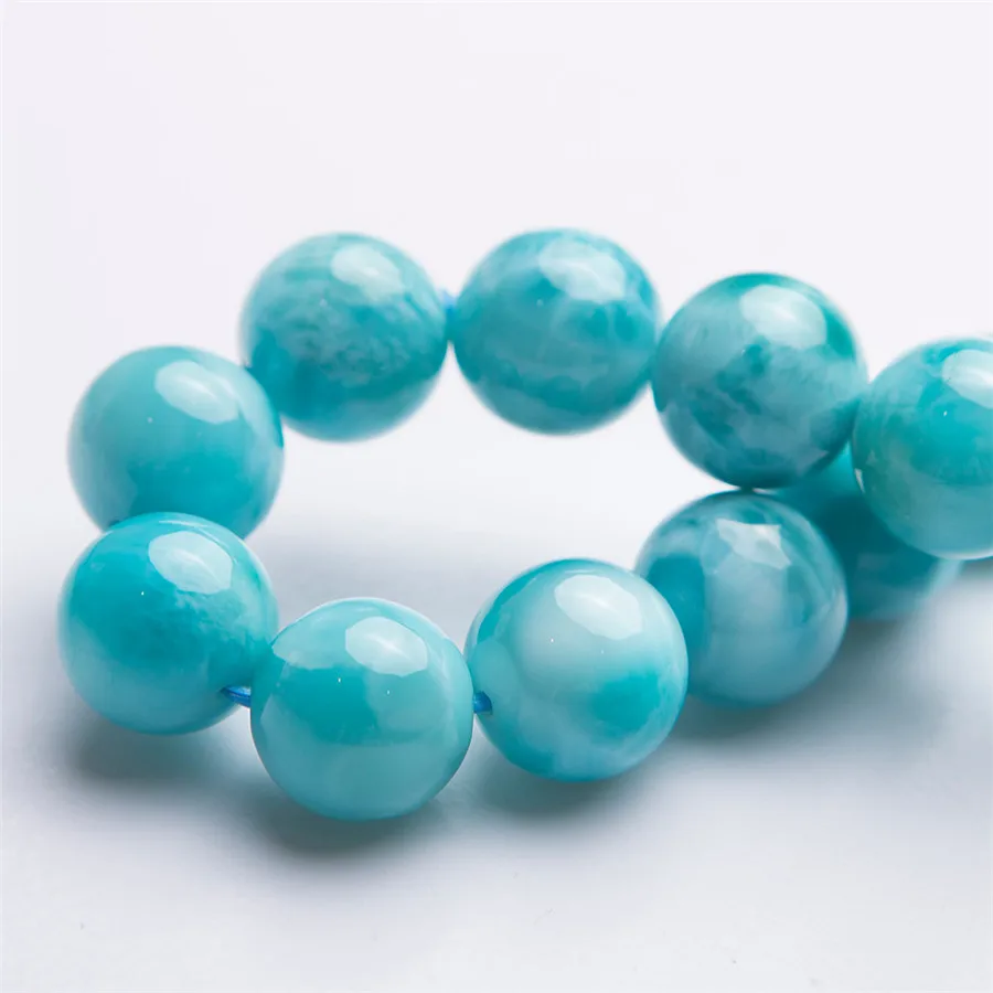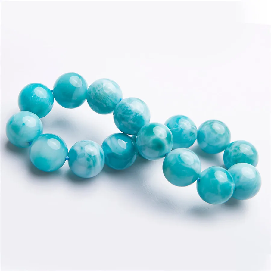 13mm Natural Larimar Stone Bracelet For Women Men Gift Gemstone Crystal Round Beads Dominica Water Pattern Stone Strands AAAAA Drop Shipping