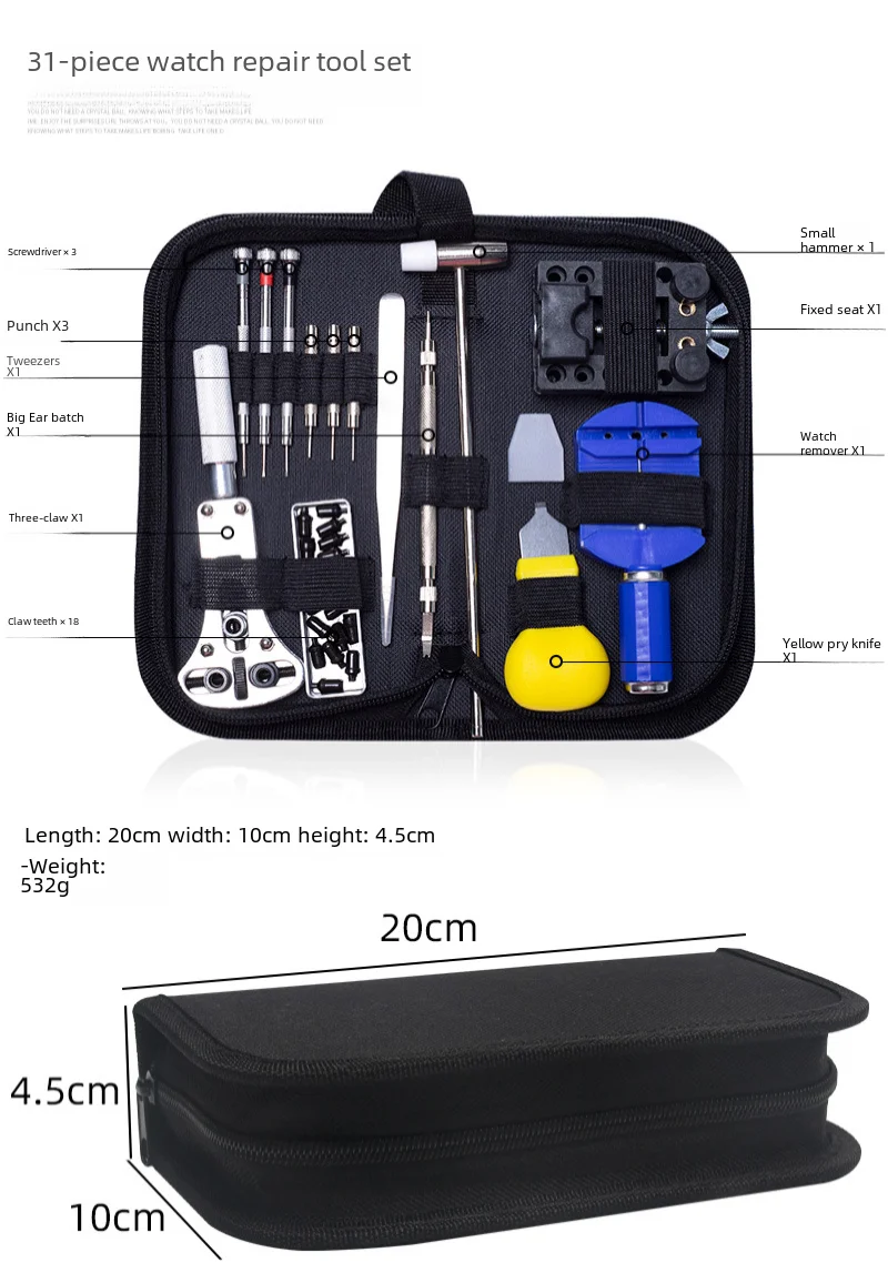 • Watch Remover Tool Kit :This set includes a watch remover tool kit, making it easy to take apart and repair your watches.