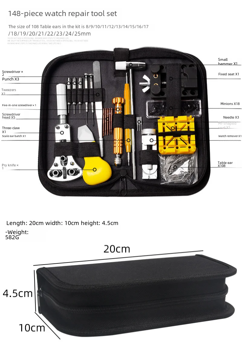• 147-piece Watch Repair Tool Set :This set includes 147 pieces of tools to help you repair your watches at home.
