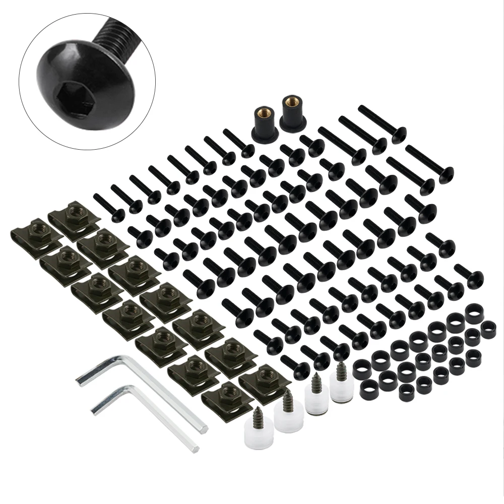 Designed by reviewing the needs of mechanics and riders at the dealership and at the racetrack, this kit has 155 pieces of premium factory style metric hardware including button head bolts with nylon washers, windscreen fasteners and more.