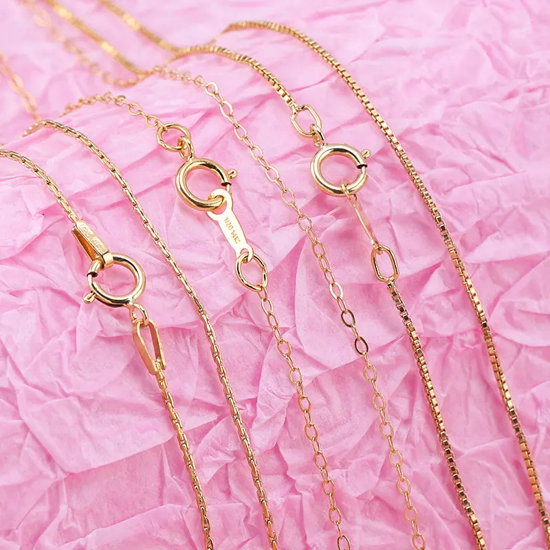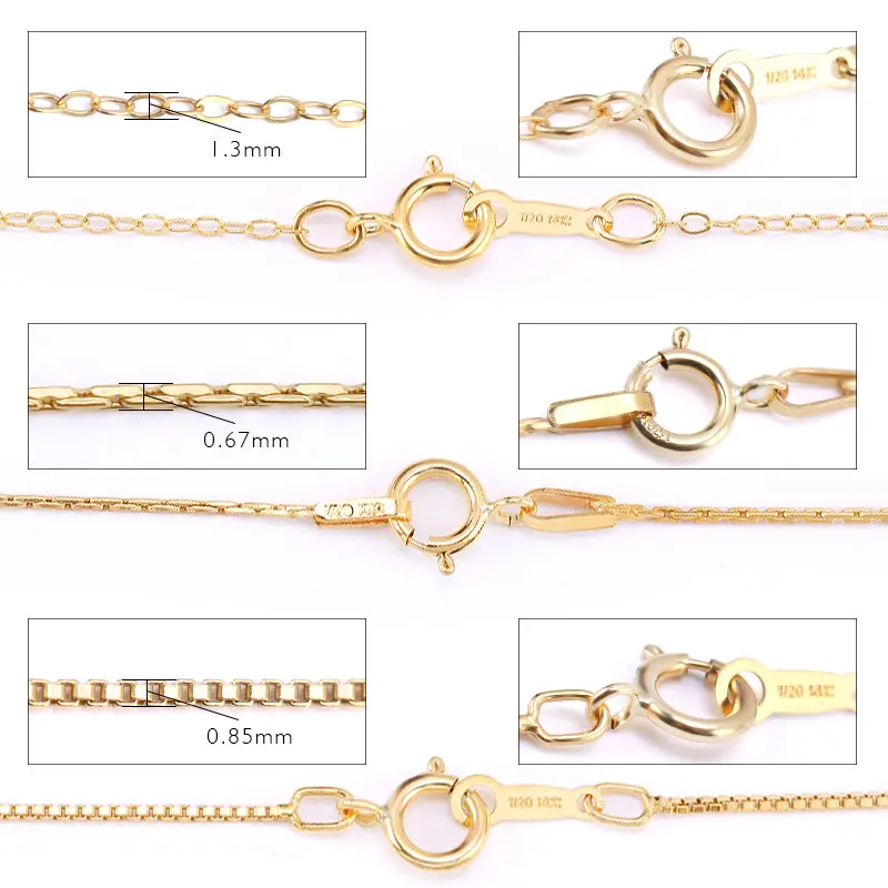 Item:14K Gold Filled Chain Material:5% Gold+ 95% brass Style:Snake Chain/ Round O Chain/ Box Chain Length:16 Inch/18 Inch Quantity:1pcs Use:Jewelry making