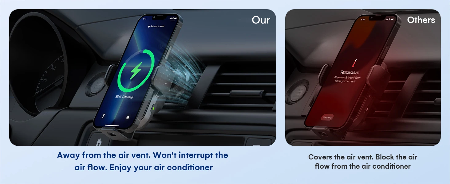 This car air vent clip could work well with a wireless car charger, car mount, or GPS device whose joint ball diameter is 0.67inch (17mm). And it fits all wireless car chargers and MagSafe car mounts.