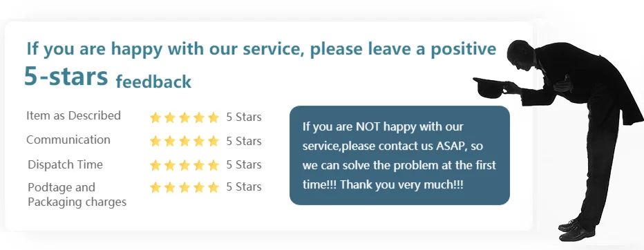 1. Customer satisfaction is very important to us. If you are satisfied with the items you ordered, please leave positive feedback.