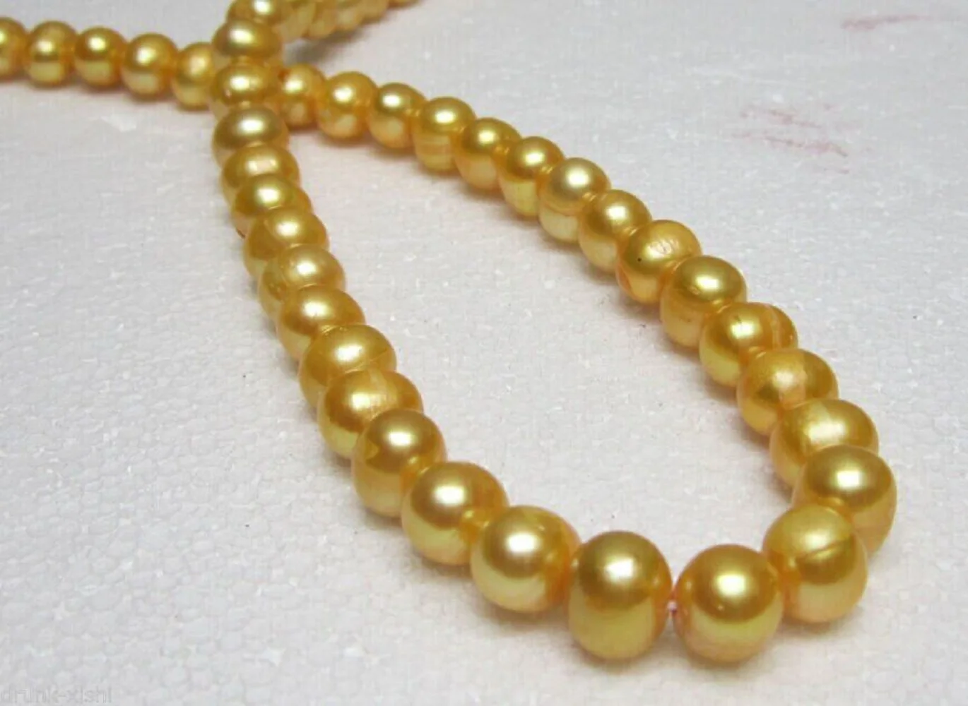 • 18 inch AAA Japanese Akoya 9-10mm gold pearl necklace with 14K gold buckle《Same bracelet 7.5-8i inches》《earring 》