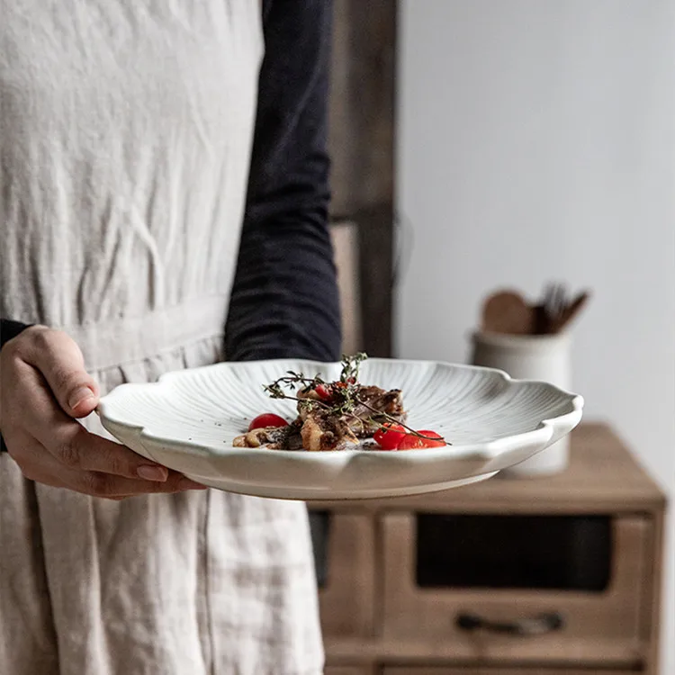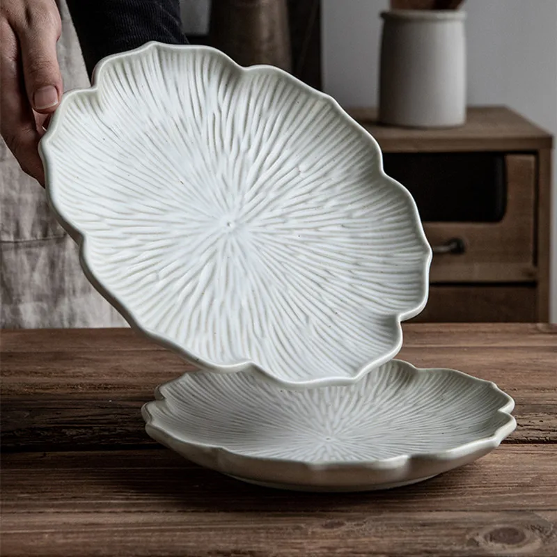 Product name : 8"/9.5" Flower Shaped Plates Dessert Plates Pottery Made By Hand Relief craft