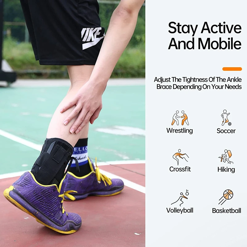 ?THE BEST ANKLE SUPPORT: Two plastic supports on both sides of ankle brace for women and men can fix the ankle and keep it straight. Adjustable straps and sturdy Velcro provide better protection for the ankles, you can freely adjust the tightness to prevent the ankle from shifting. The side straps contour your ankle to immobilize the foot without restricting your ability to walk or run.