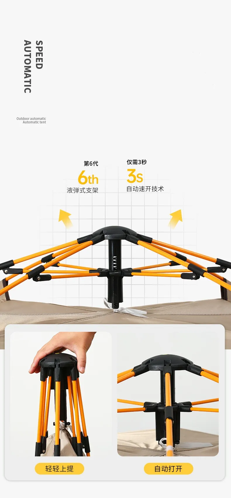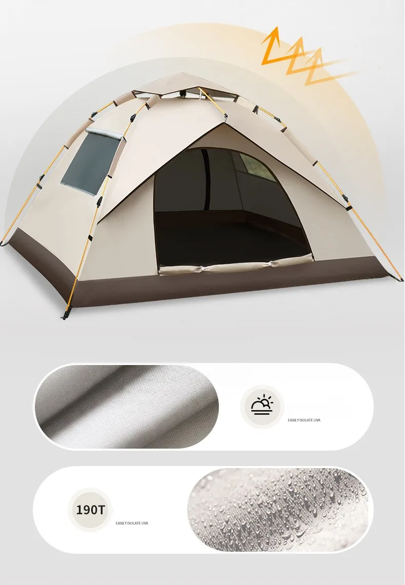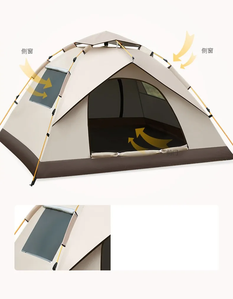 This tent is designed for quick opening. It doesn't take a long time to build. It is very time-saving and labor-saving. Besides, it is large enough to accommodate a famil