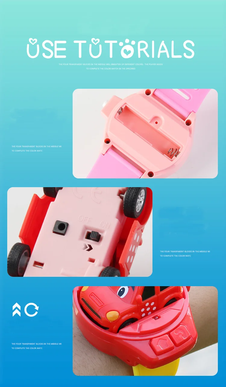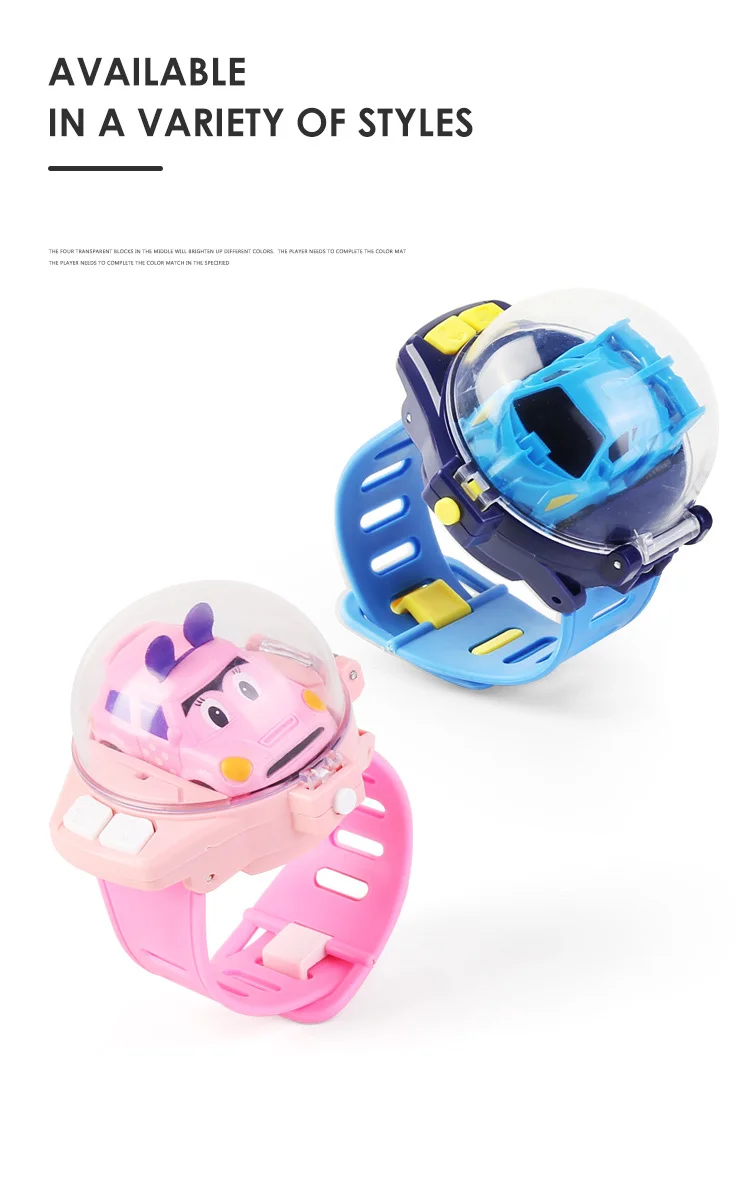 Professional Design: The mini rc watch car comes with a silicone wristband, the waterproof transparent cover protects the rc car from moisture, the wristband is designed as a 2.4G remote control with a mini colorful cute racing car attached, making the toy more attractive to your kids.