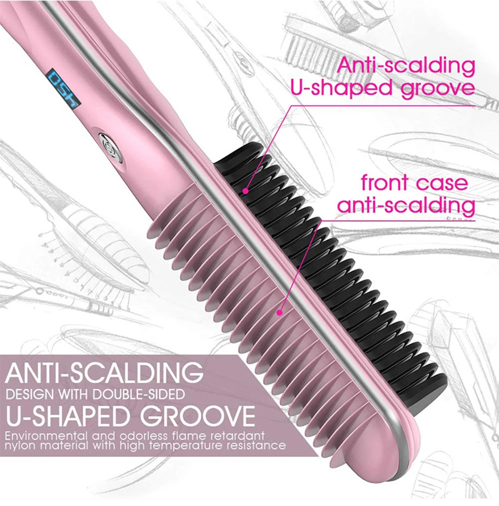 2 in 1 Electric Hair Straightener Brush 30S Fast Heat Up Anti-scald Straight &Curler Dual-use Straightening Negative IronĀ