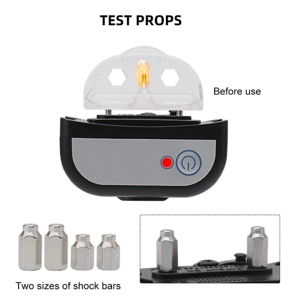 button to test. Push the SHOCK button and check if the shock test kit lights up.