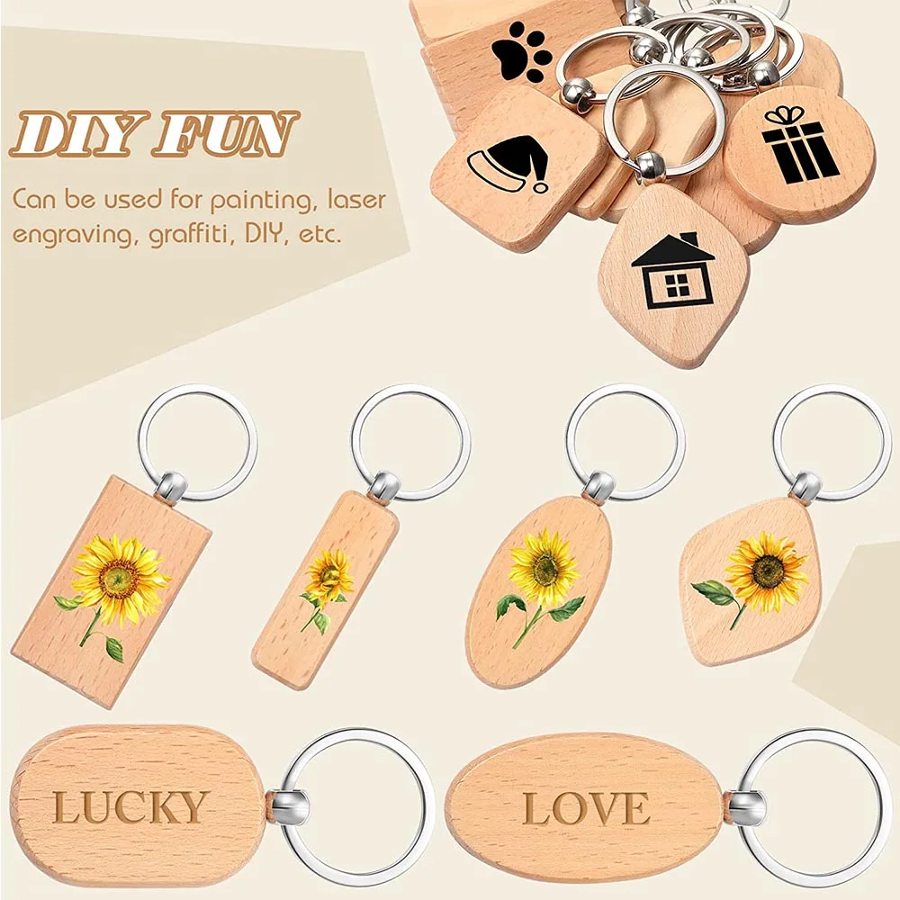 20/50Pcs DIY Blank Wooden Key Chain Wood Engraving Blanks Wooden Keychain Unfinished Key Tag for DIY Gift Crafts Wood