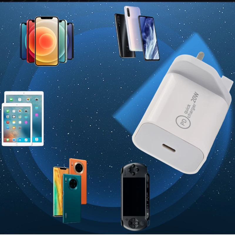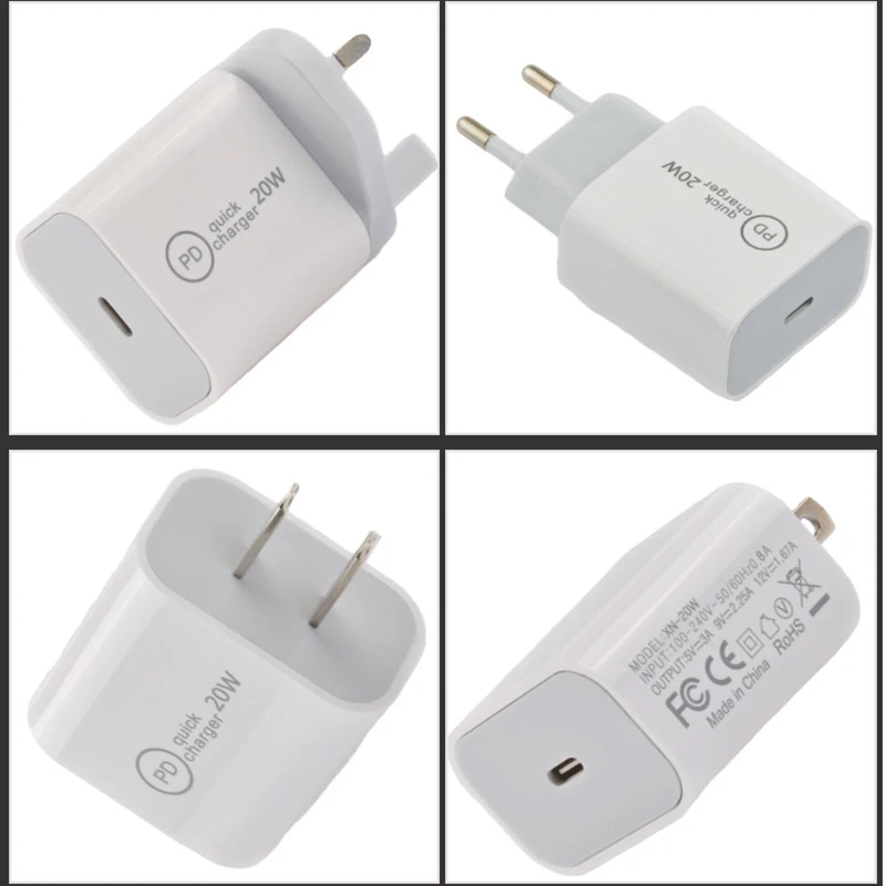 Real 20W Fast Charging UK/EU/US/AU Plug AC Power Adapter Quick Charge For iPhone Samsung Huawei Mobile USB C PD Charger