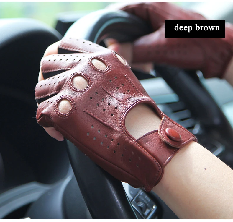 2022 Winter Leather Men's Half Finger Gloves Male Thin Outdoor Non-Slip