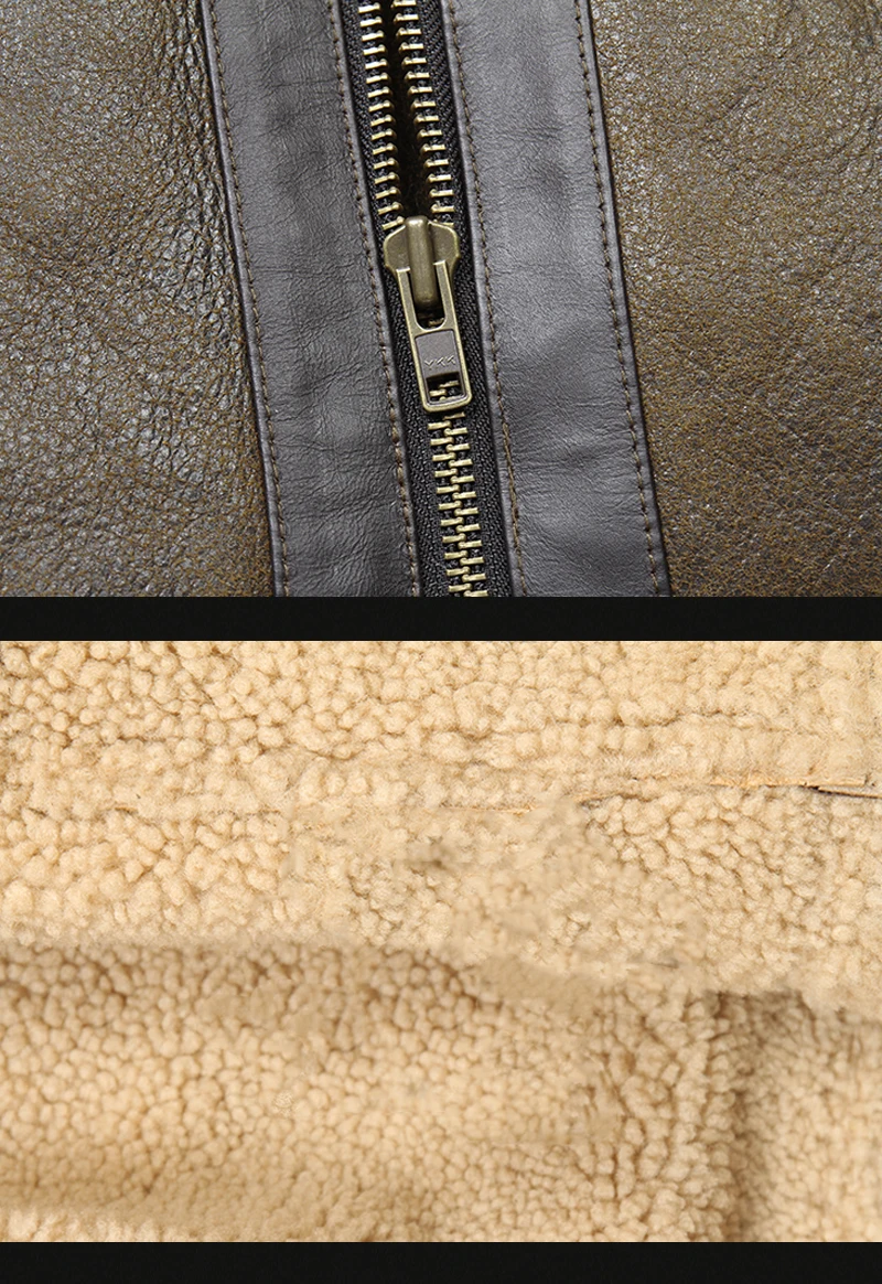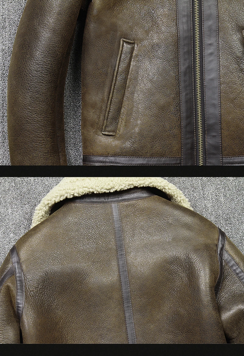 2022Winter Bomber Genuine Leather Jacket Men Sheep Shearling Lambskin Warm Jackets High Quality Japanese Version B3 Fur Collar