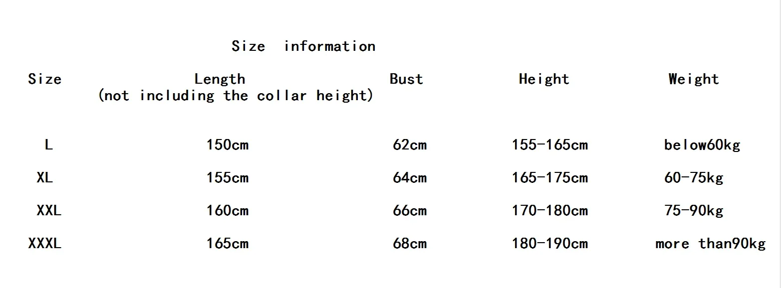 Note : Dear buyer, if your height and weight are close to the maximum size of the scale, I suggest you go up one size . Our smallest size is L size, please do not buy according to your usual dress size, please choose according to the following ruler table, thank you very much~~
