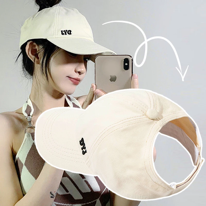 ● Simple semi-hollow top baseball cap can be tied high ponytail.