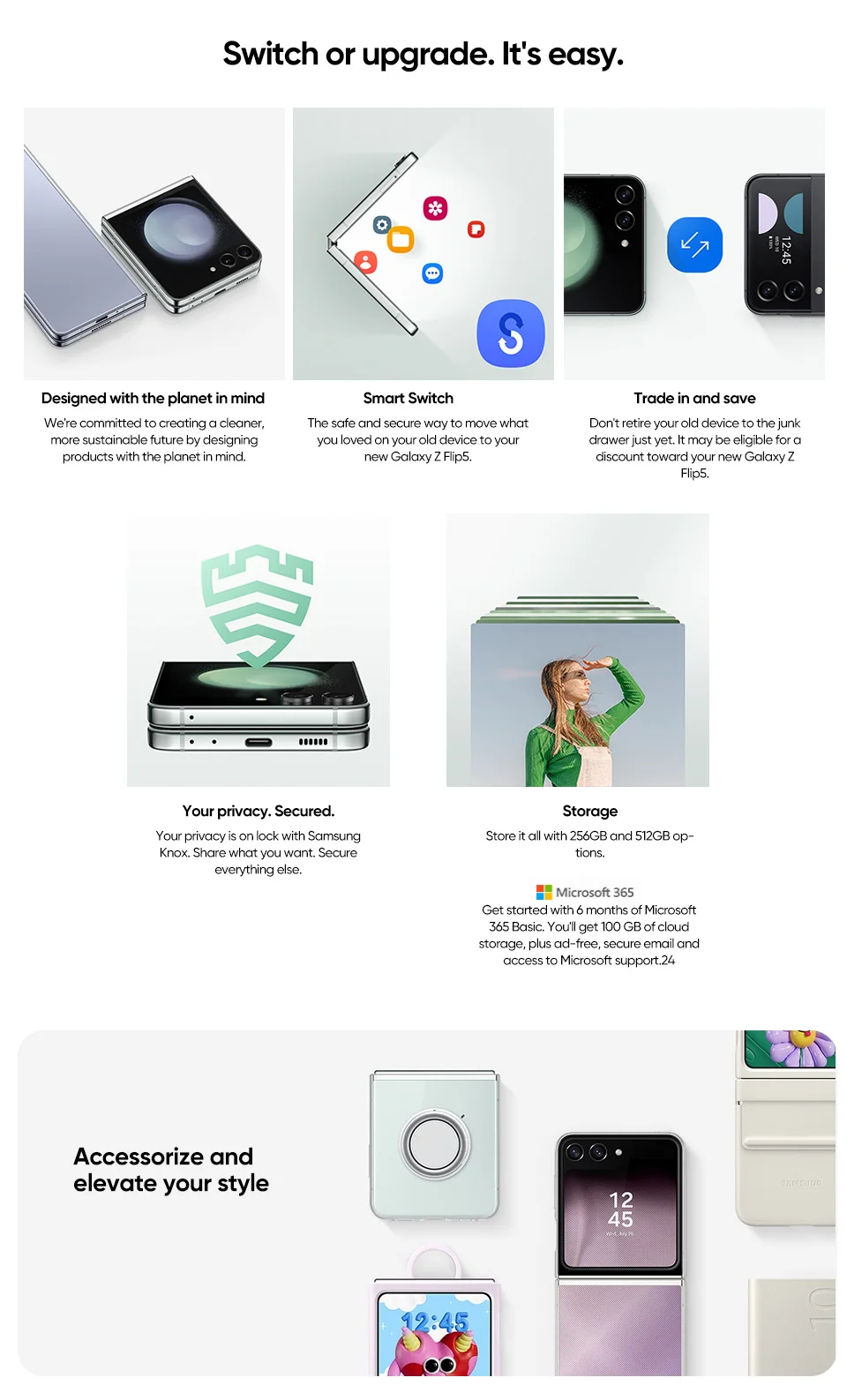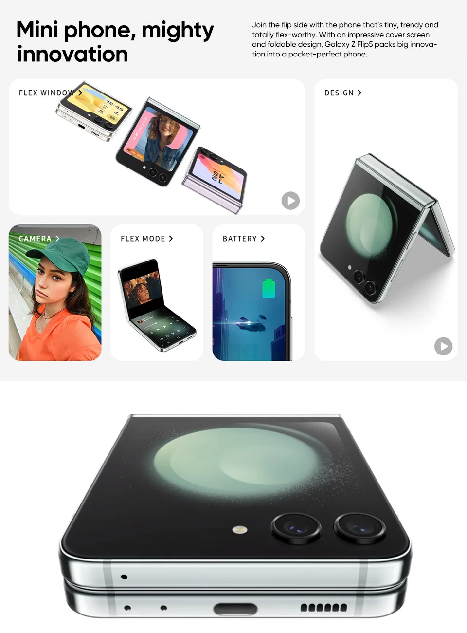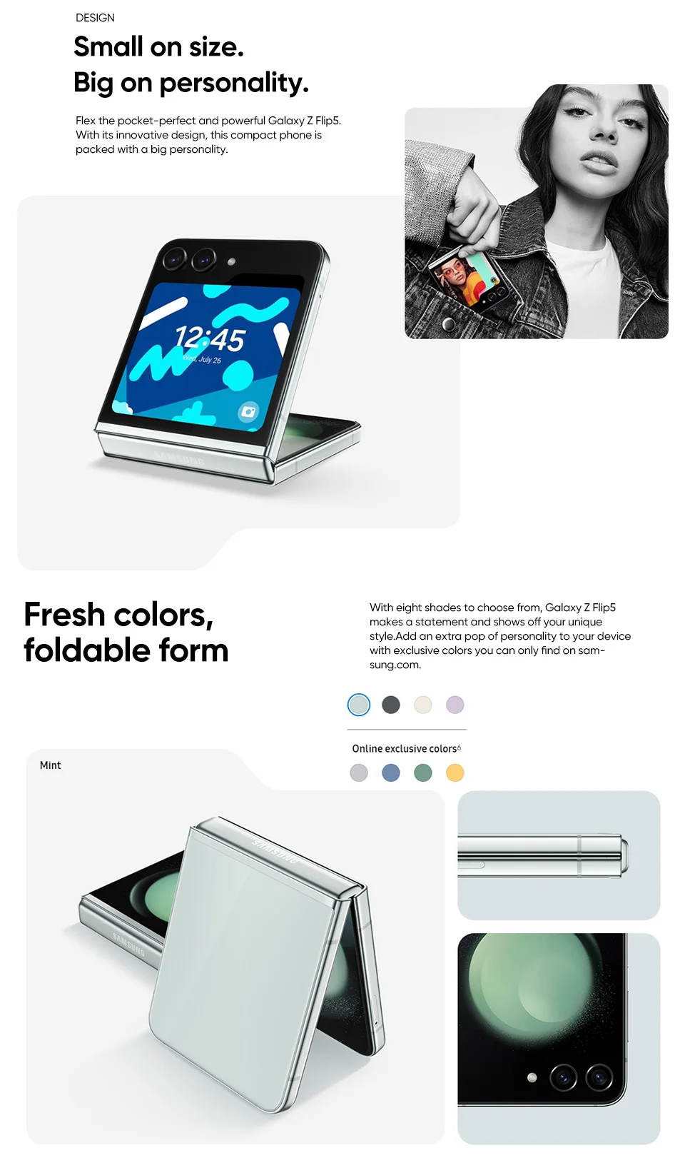 • 2023 Samsung Galaxy Z Flip5 Flip 5 5G Foldable Dynamic AMOLED 2X Display Snapdragon 8 Gen 2 Android 13 samsung with Flip 5
