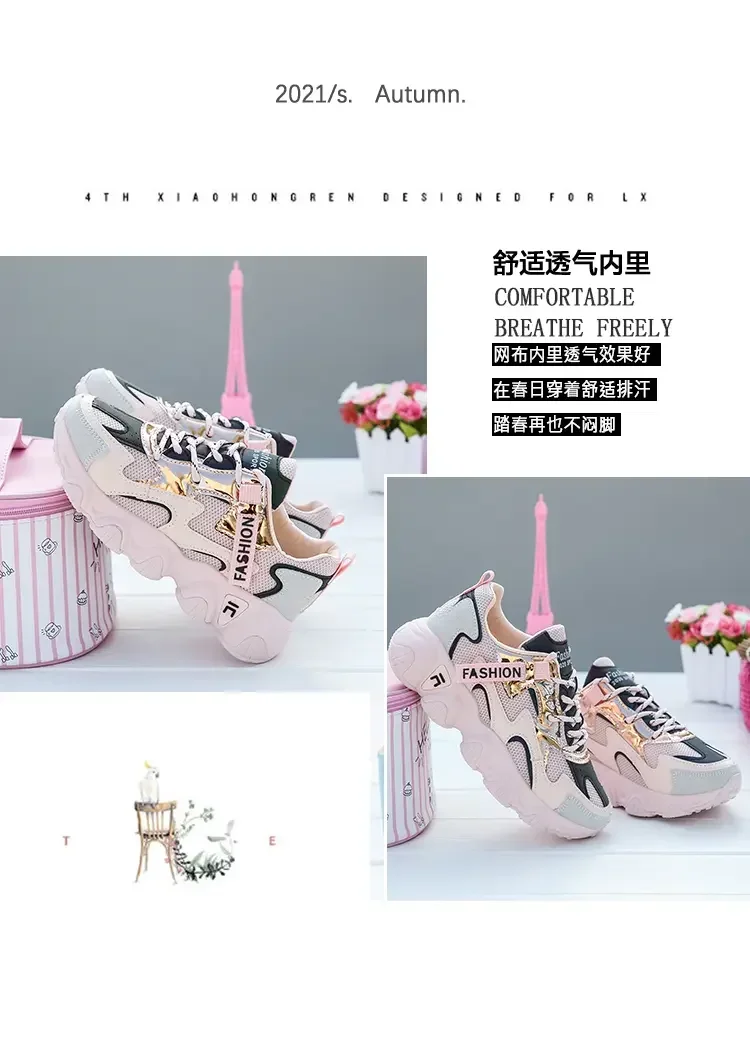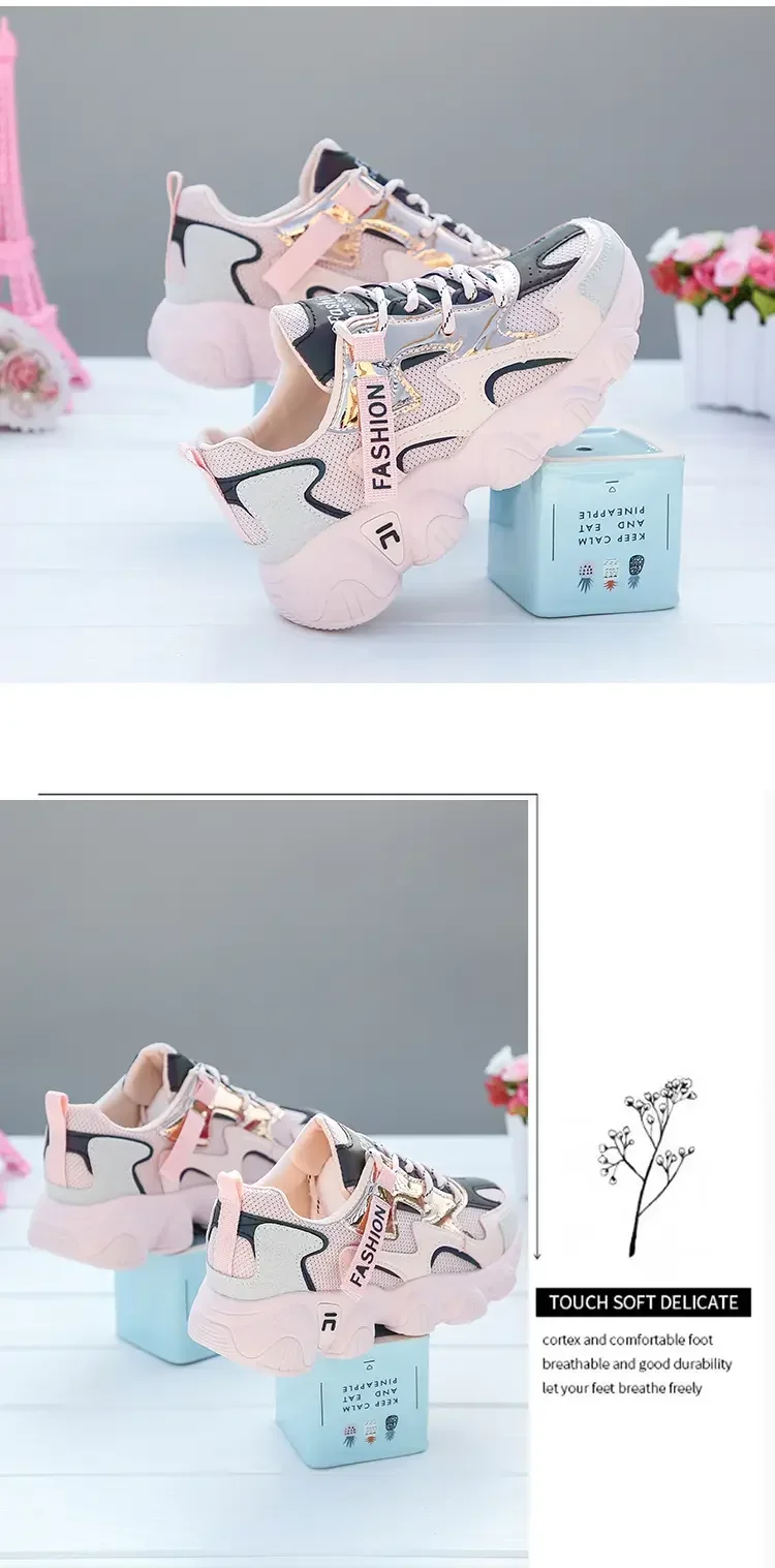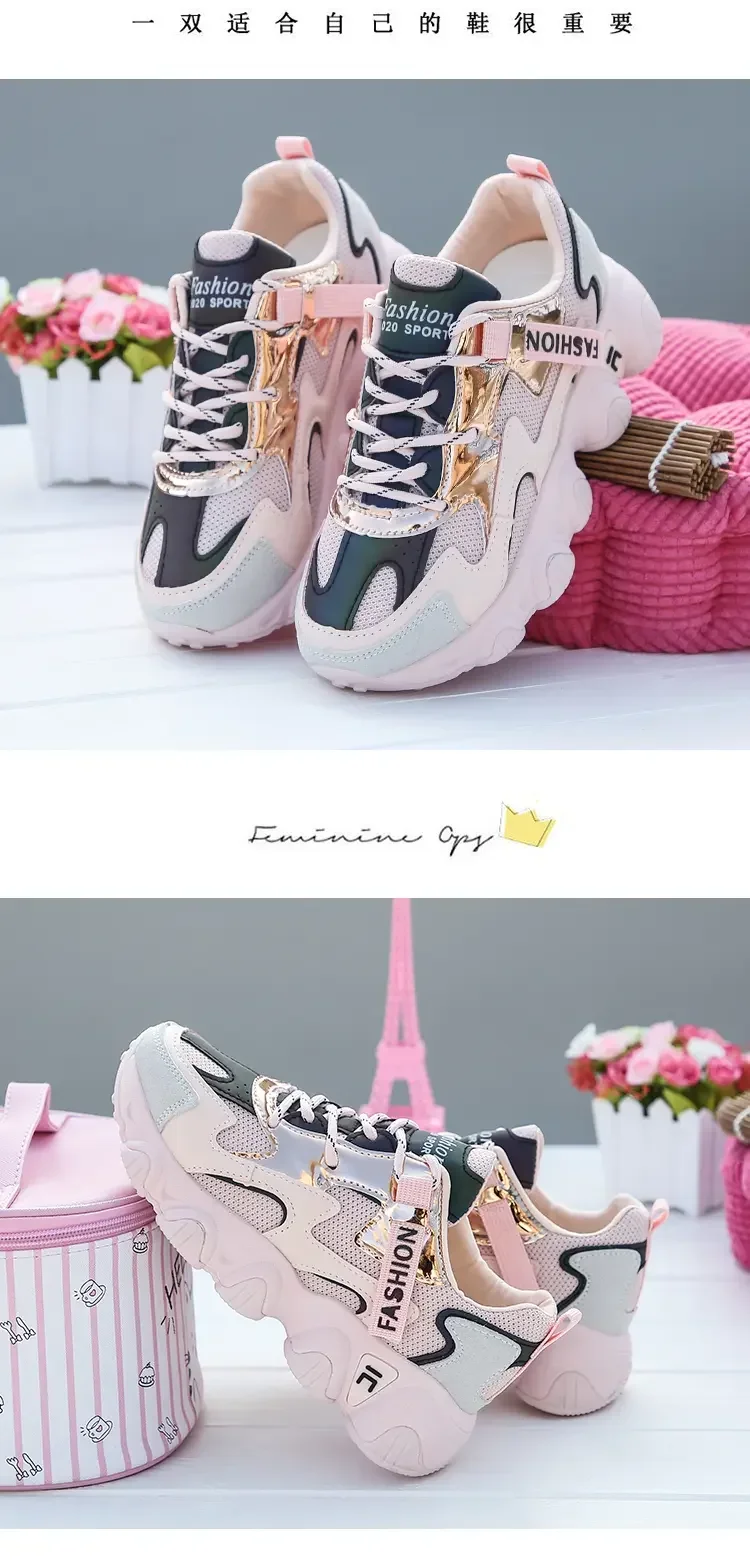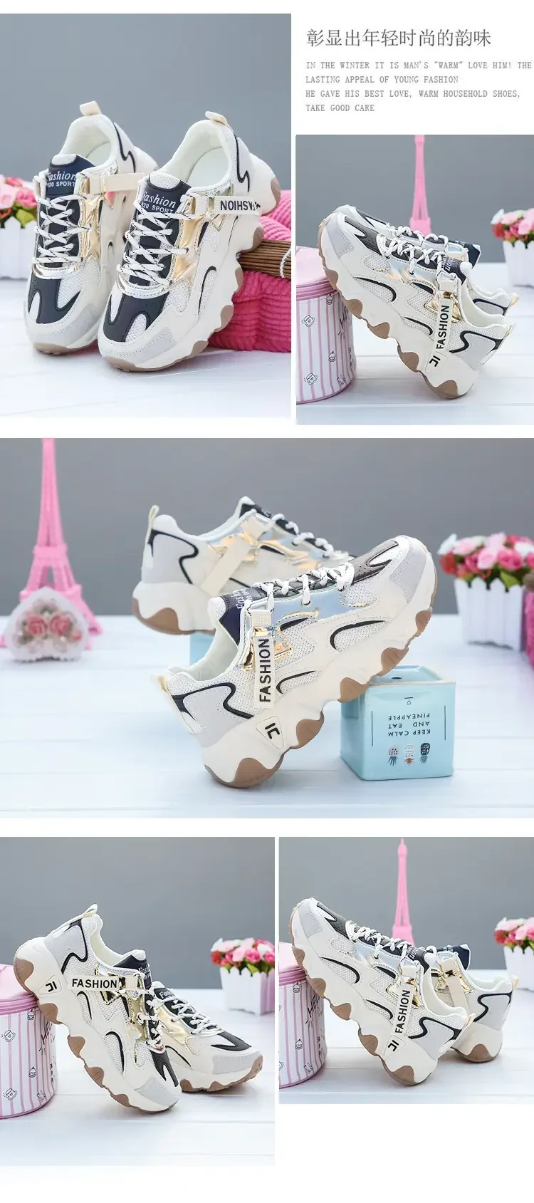 2023 Tennis Shoes for Women Light Breathable Female Sport Trainer Shoes Non-slip Basket Sneakers Lace-Up Casual Platform Shoes