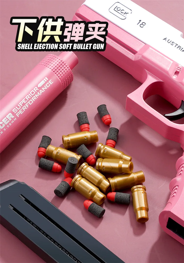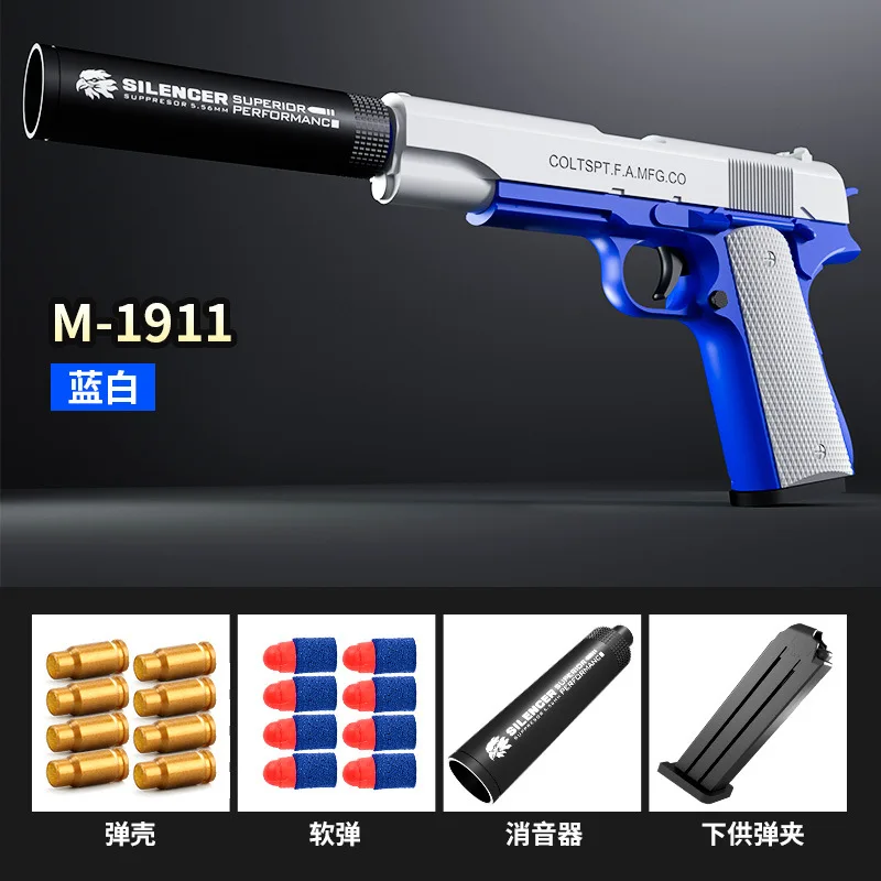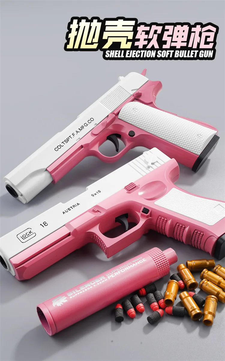 2024 M1911 Glock Soft Bullet Toy Gun Foam Ejection Toy Foam Darts Blaster Pistol Manual Airsoft Gun With Silencer For Kid Adult