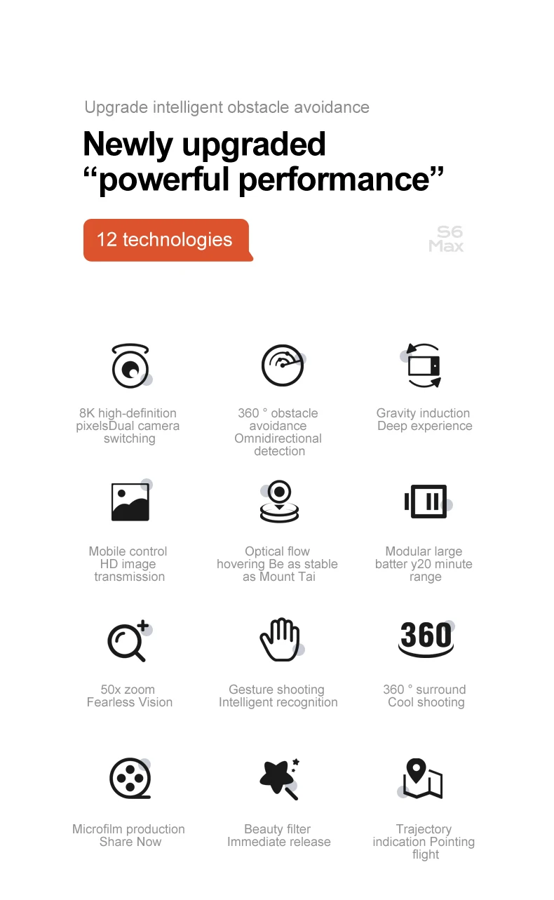 -One-click takeoff / landing. One-button take-off or landing automatically, the drone will take off or return to the take-off position.