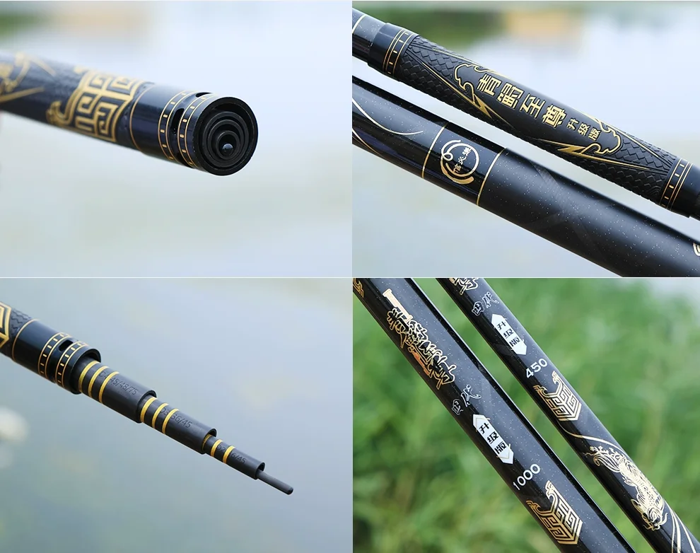 • 20H Super hard Fishing Rod High Carbon Hand Rod 3.6-12m Lure Rod Ultralight Black pit Carp Hand Stick Fish Cane Fishing Gear