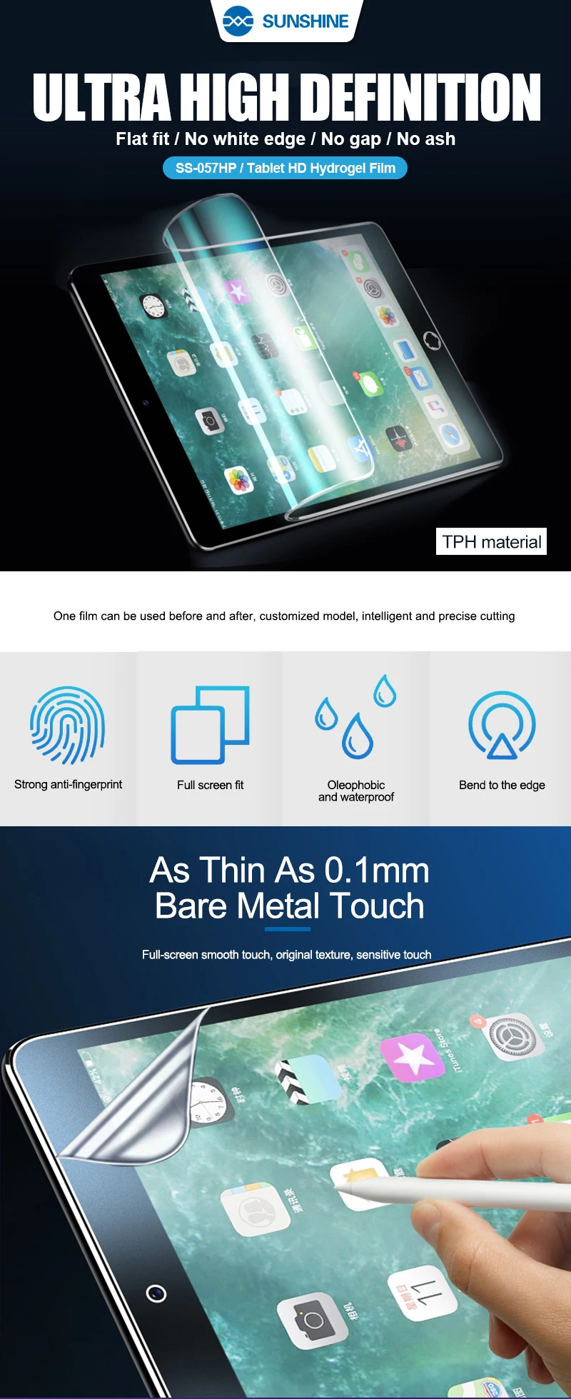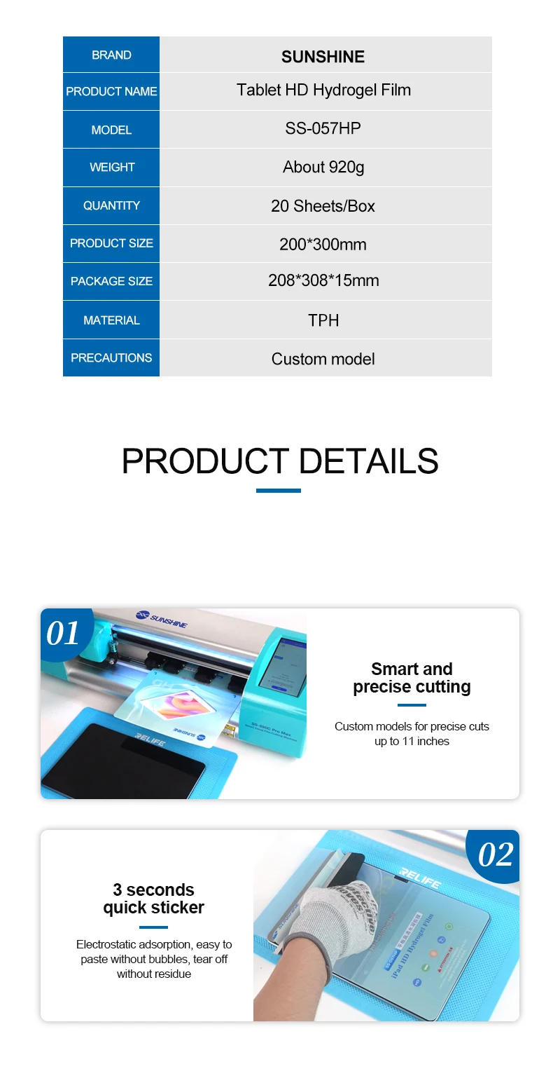 Choose Options Quick view 20pcs SS 057P Sunshine Flexible Hydrogel Film For iPad Tablets Screen Protectors HD Anti-blue Front Film for Cutting Machine $125.15 - $130.55 20pcs SS-057P Sunshine Flexible Hydrogel Film For IPAD Tablets Screen Protector HD Anti-blue Front Film for Cutting MachineFlexible Hydrogel Film for iPadSS-057P HD Hydrogel Film For iPad(under...
