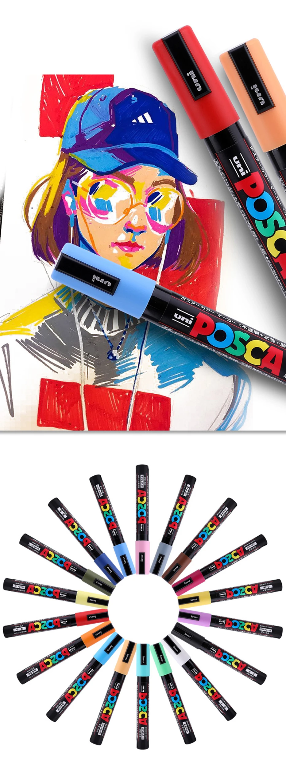 Choose Options Quick view Japan UNI POSCA Marker Pen Stackable Color Graffiti Draw Advertising Pen PC-1M/3M/5M 21/24 Color Set Art Supplies Accessories $577.45 - $661.28 Model Number :Posca PC-1M/PC-3M/PC-5M Body Color :Black