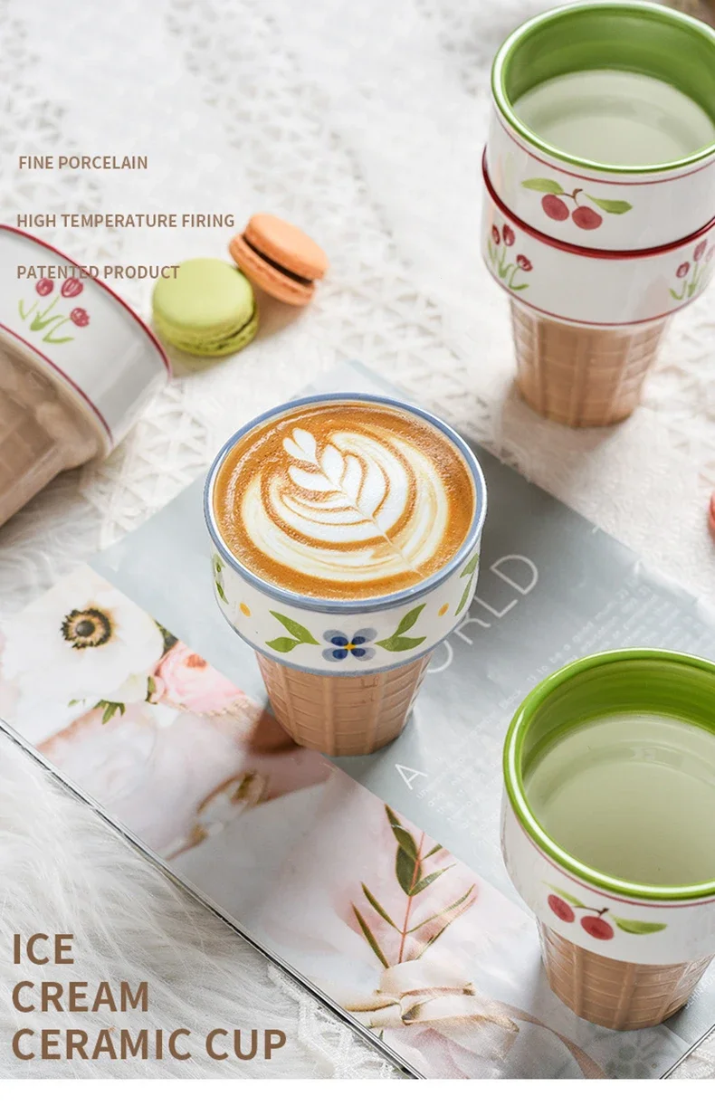 240ml Creative Ceramic Ice Cream Cone Cups Coffee Cup Stackable Porcelain Tea Milk Water Mugs Home Decoration Kitchen Drinkware