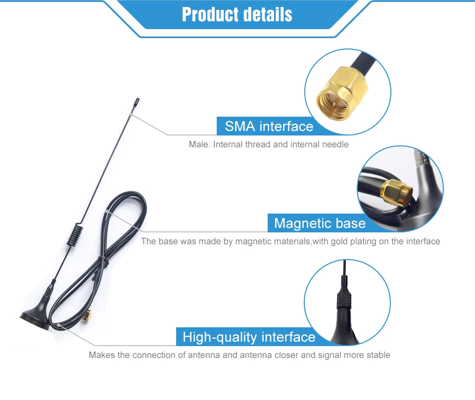 2Pc 915MHz Wifi Anten High Gain ufh Antenna TX915-XPL-100 SMA Connector 915 MHz Magnetic Antenna For Wireless Communication